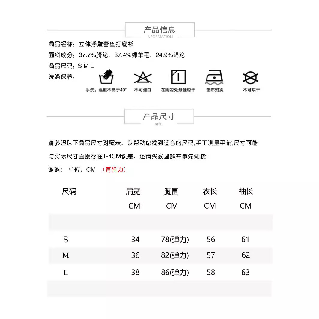 | nameOriginal | Elegant sweet 120Schao fine wool elegant three-dimensional jacquard lace bottoming shirt women's autumn half turtleneck inner wear |