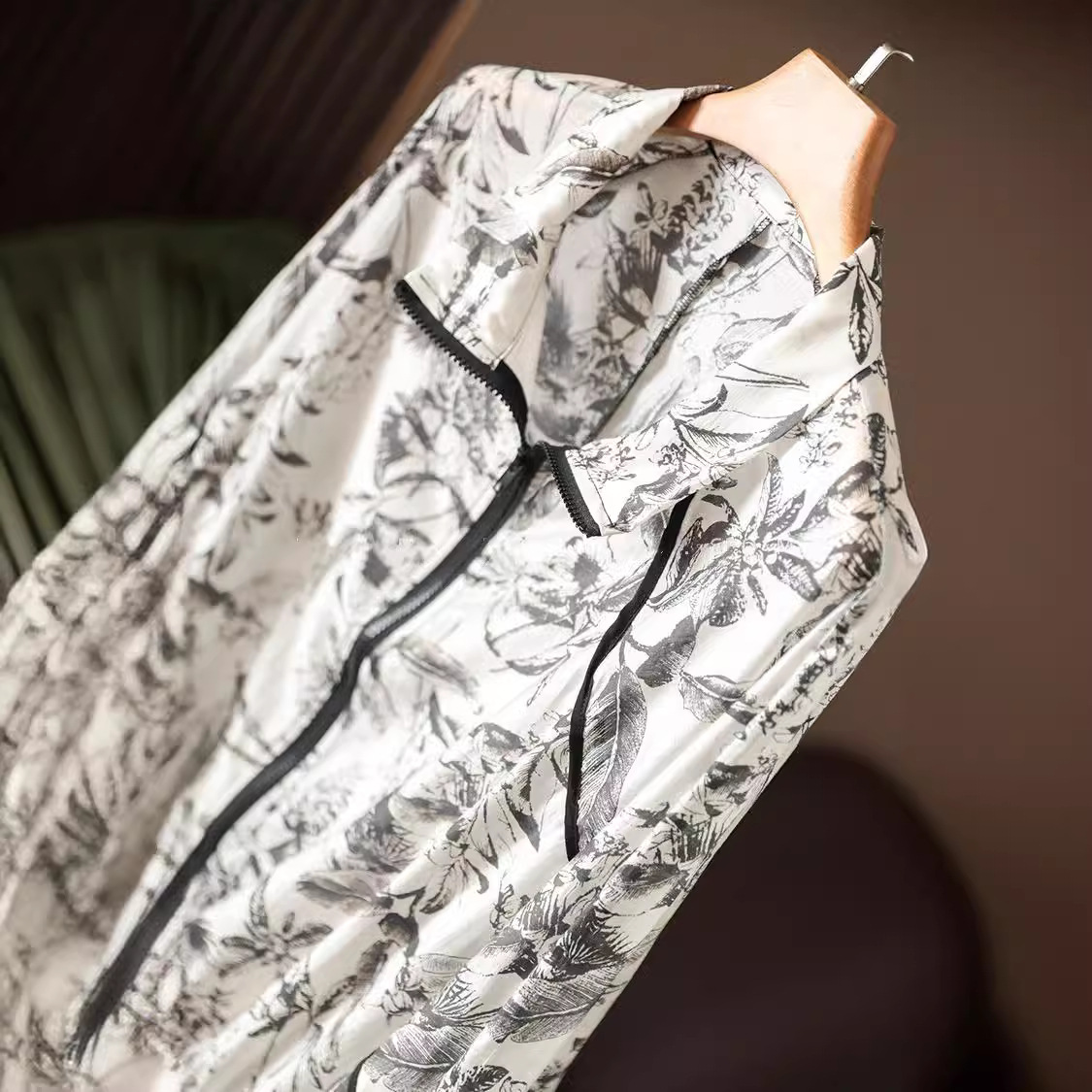 Elegant temperament! Thin as a cicada’s wing! Women’s Short High-end Thin Printed Imitation Tencel Sunscreen Short Coat