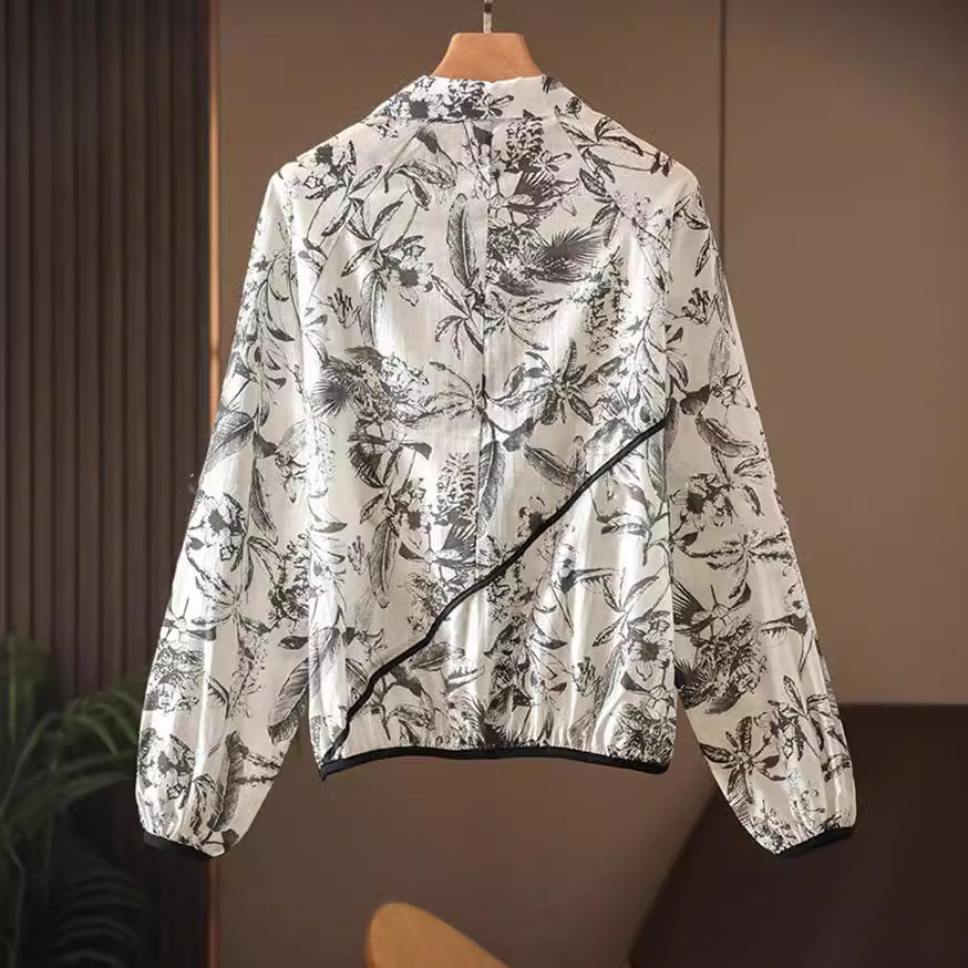 Elegant temperament! Thin as a cicada's wing! Women's Short High-end Thin Printed Imitation Tencel Sunscreen Short Coat