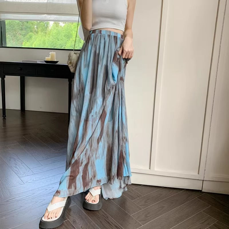 | nameOriginal | Elegant Tie-Dye Pleated Skirt Women's Summer 2024 New Tall Draped Long Skirt High Waist Skirt |