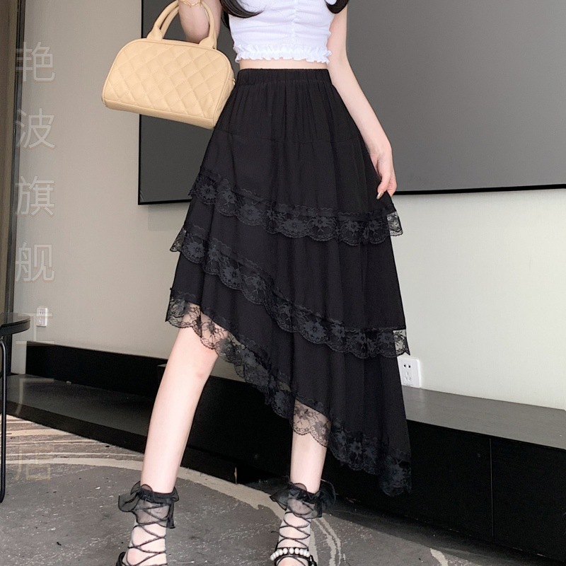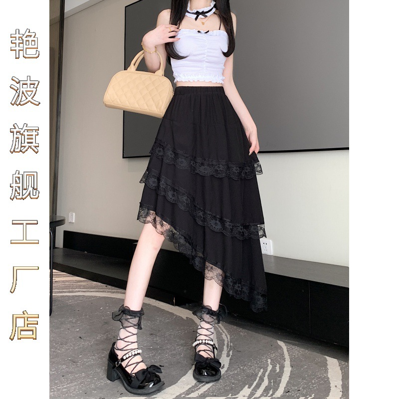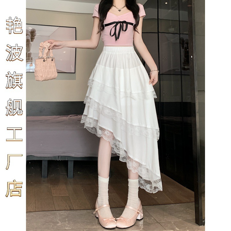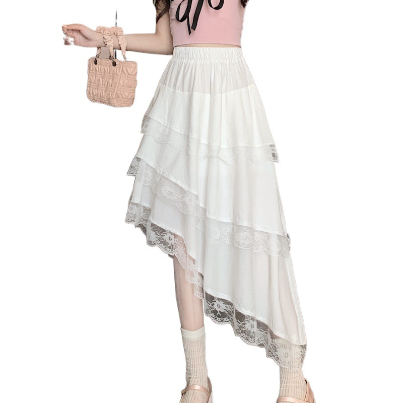 | nameOriginal | Elegant White Irregular Lace Edge Cake Skirt Skirt Women's Summer Mid-length Elapto High Waist Show Taste |