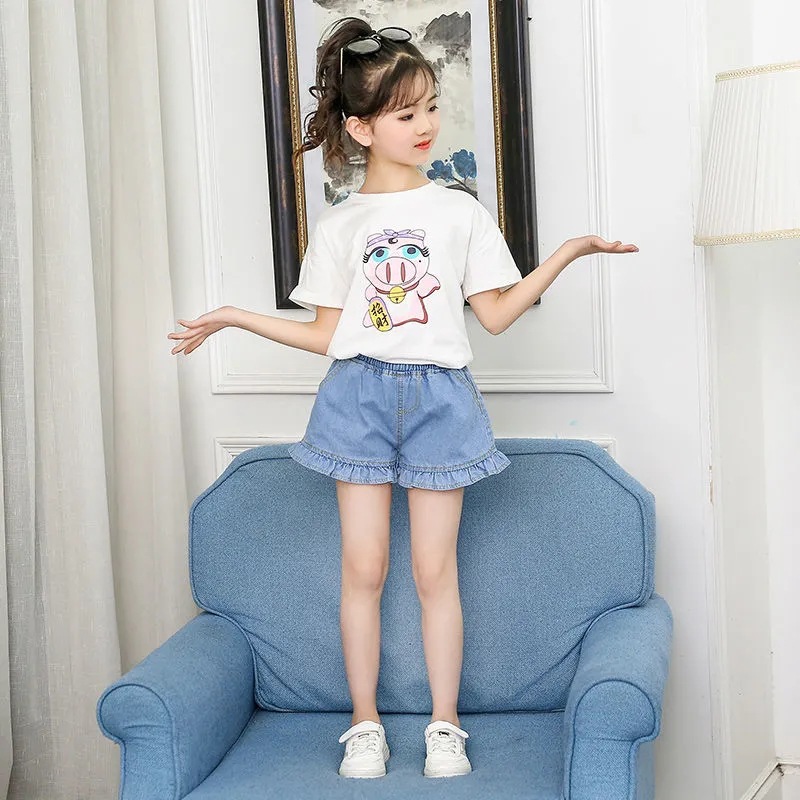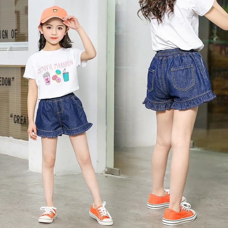 | nameOriginal | Elementary School student shorts summer new Denim short pants skirt ruffled versatile sports pants children's casual Denim shorts |