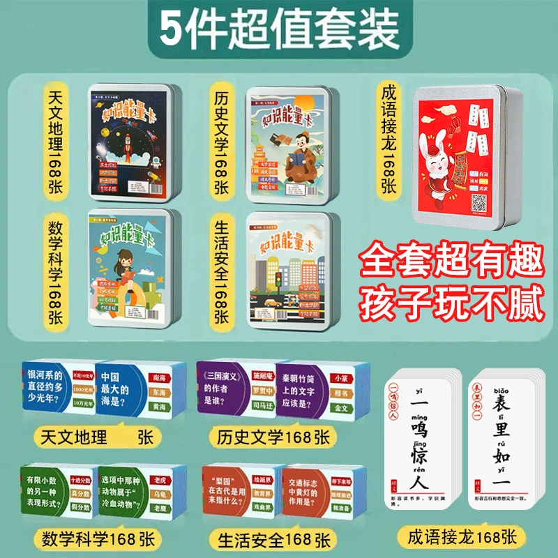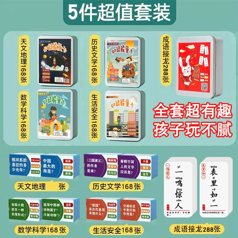 | nameOriginal | Elementary school students' knowledge energy cards encyclopedia fun cards idioms solitaire playing cards children's educational toys picture |
