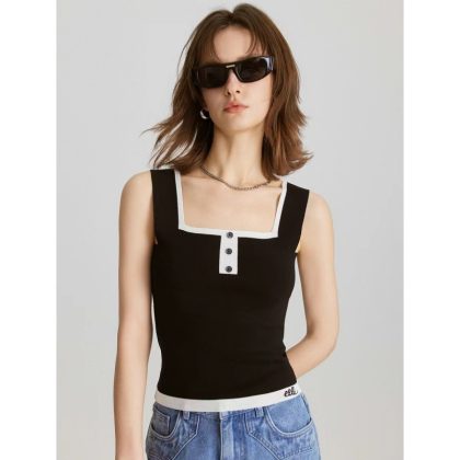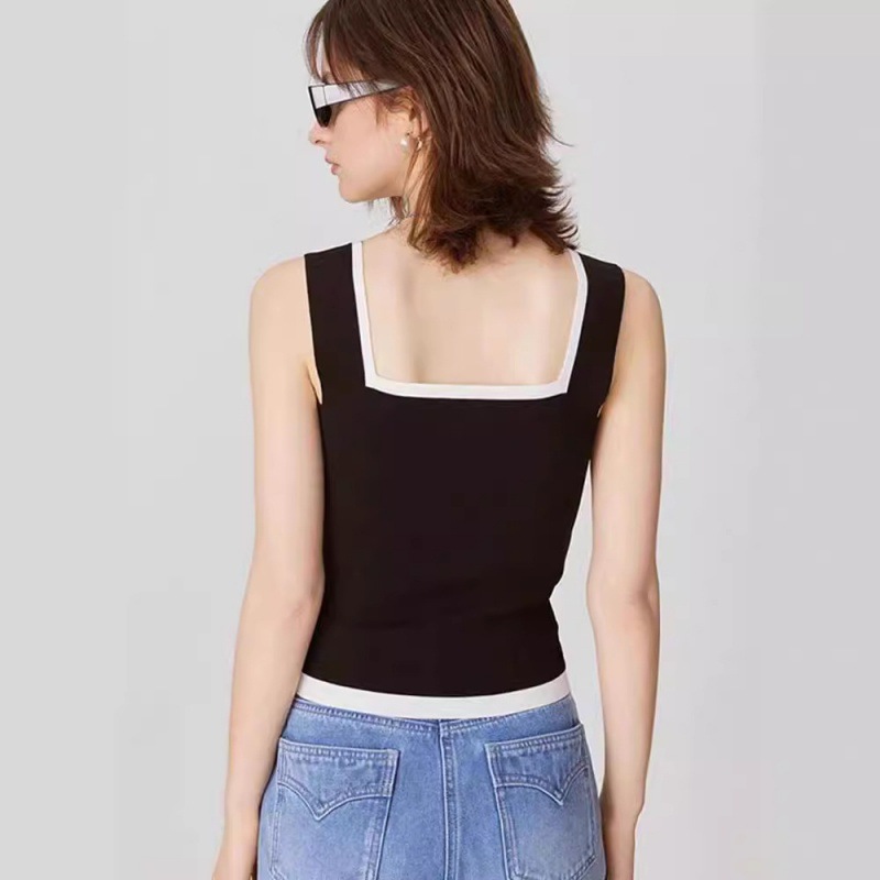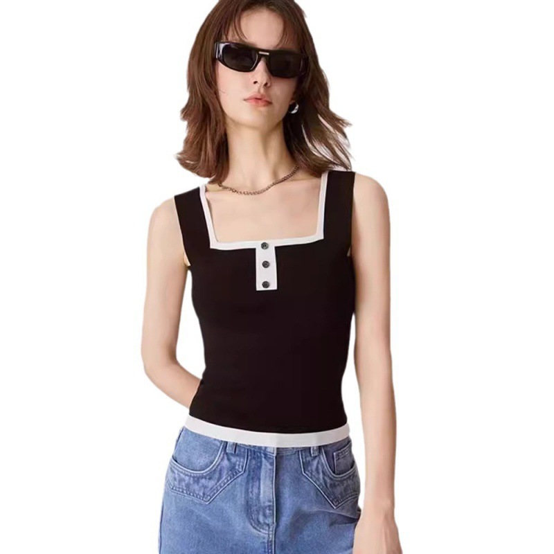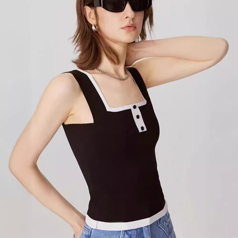 | nameOriginal | ELLE Design Sense Black and White Contrast Color Knitted Camisole Women's 2024 Spring New Inner Base Sleeveless Top |