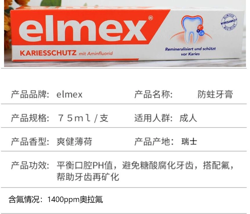 | nameOriginal | Elmex Children's Mouthwash for Adults in the Teeth Changing Period Anti-Cavities Caries Demineralization Black Spots White Spots Remineralization |