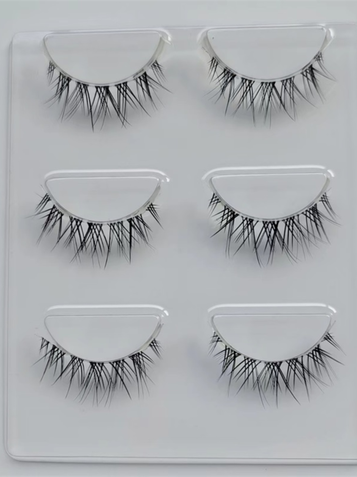 Elmo Barbie Natural Short Cross False Eyelashes Transparent Stem Single Cluster Pointed Tail Thin Stem Cute Little Devil C10