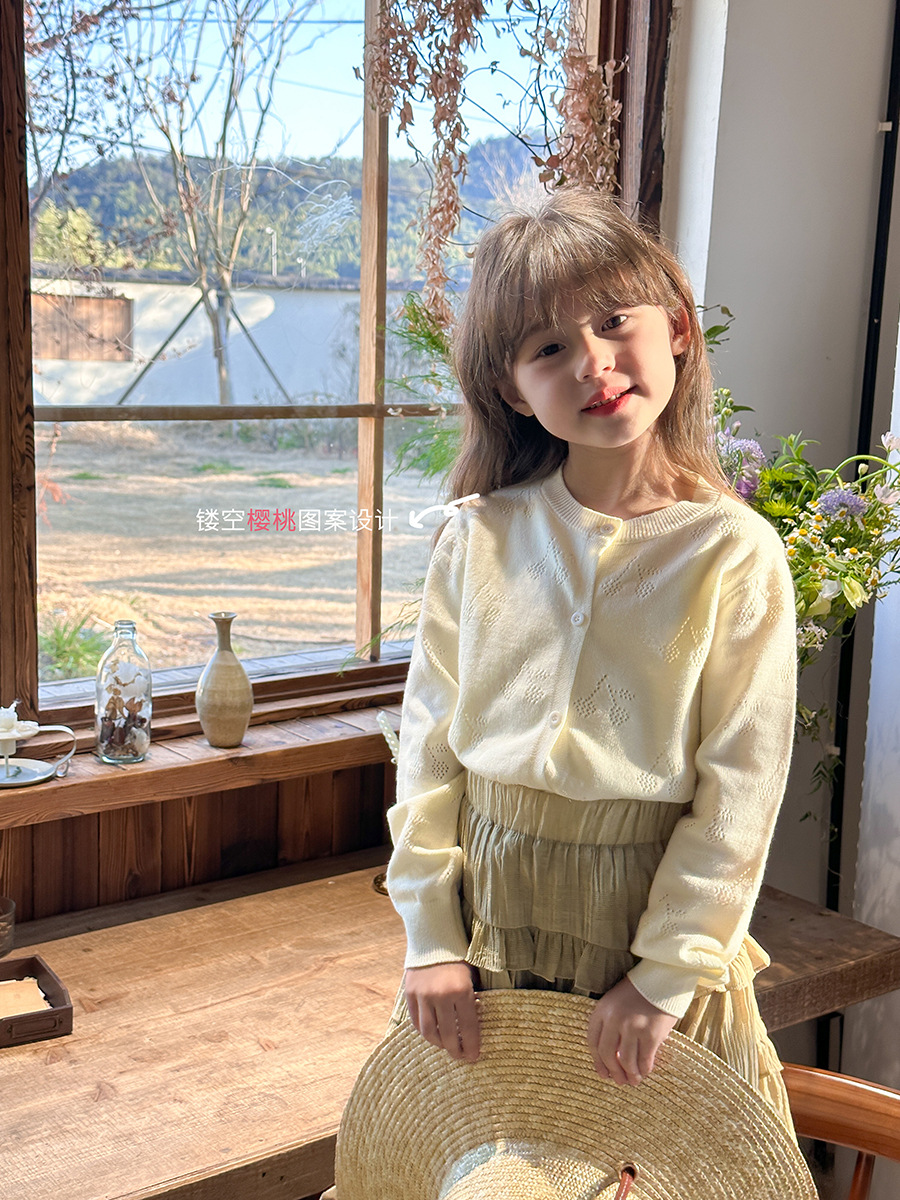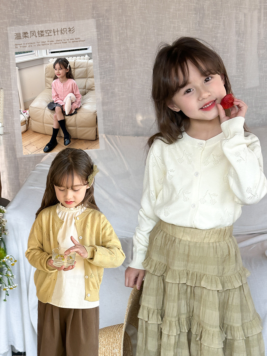 | nameOriginal | Elmo Beibei 2024 Spring Korean Style Sweet Elegant Knitted Hollow Cherry Cardigan Jacket for Large and Small Girls |