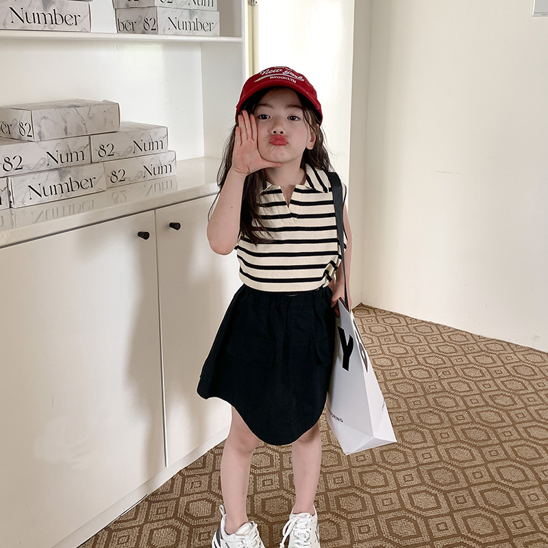 | nameOriginal | Elmo Beibei Girls suit Children's Western Style Korean Striped Sleeveless Top Work Skirt Casual Two-piece Set |
