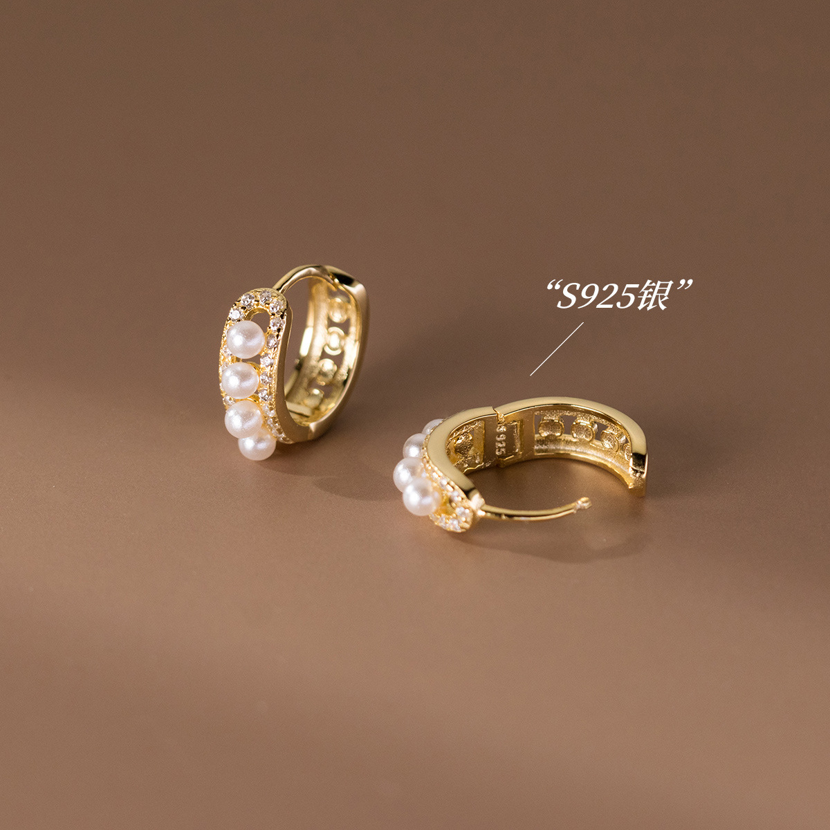 Elochy s925 Sterling Silver Synthetic Pearl Diamond Ear Buckle ins Style Design Elegant Ear Jewelry M03917