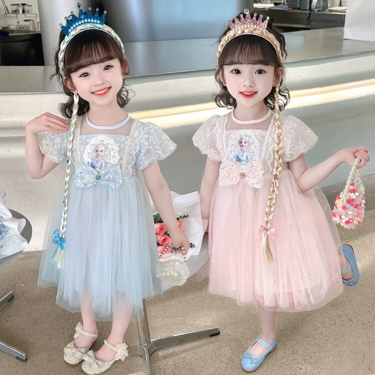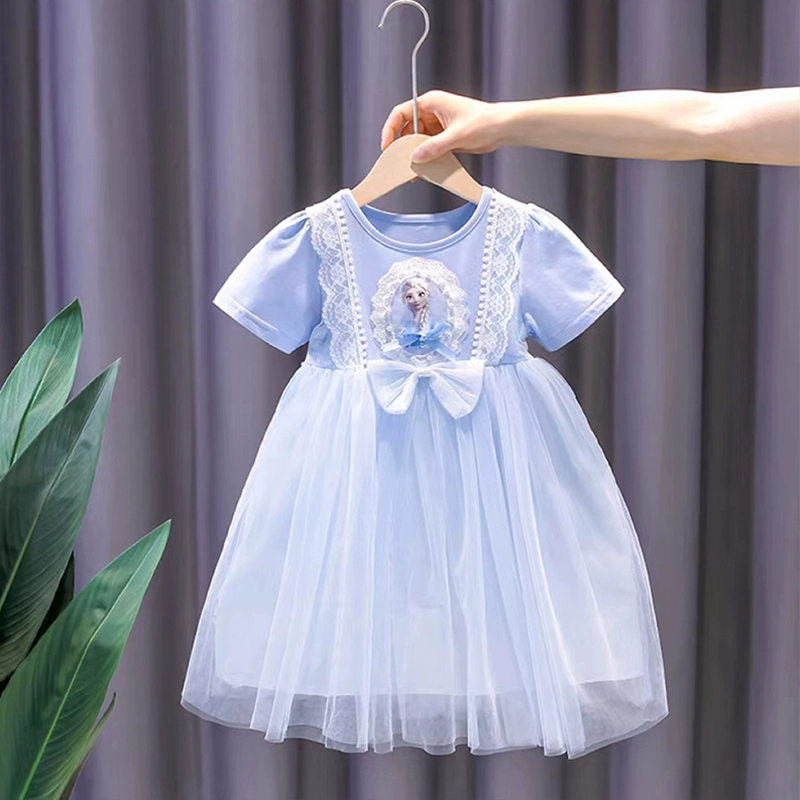 Elsa Summer Cotton Princess Dress Frozen Short Sleeve