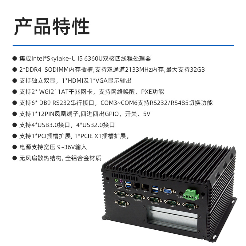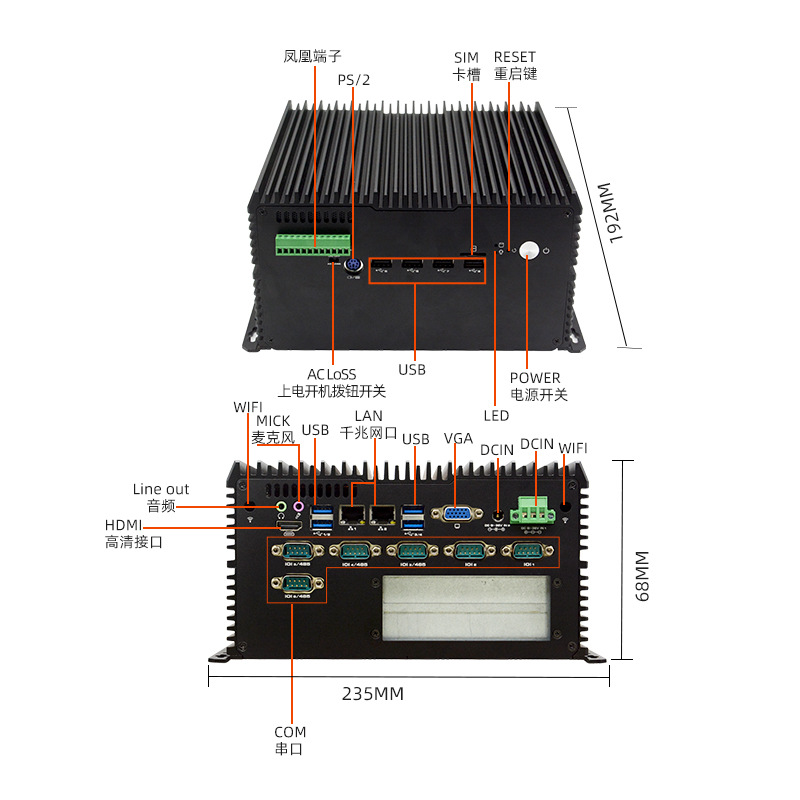 | nameOriginal | Embedded fanless industrial control machine industrial dustproof miniature industrial control host dual network port 6 Serial Port 8USB low power consumption |