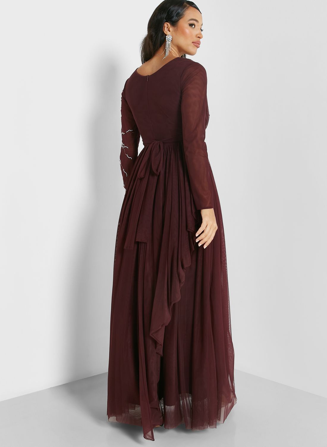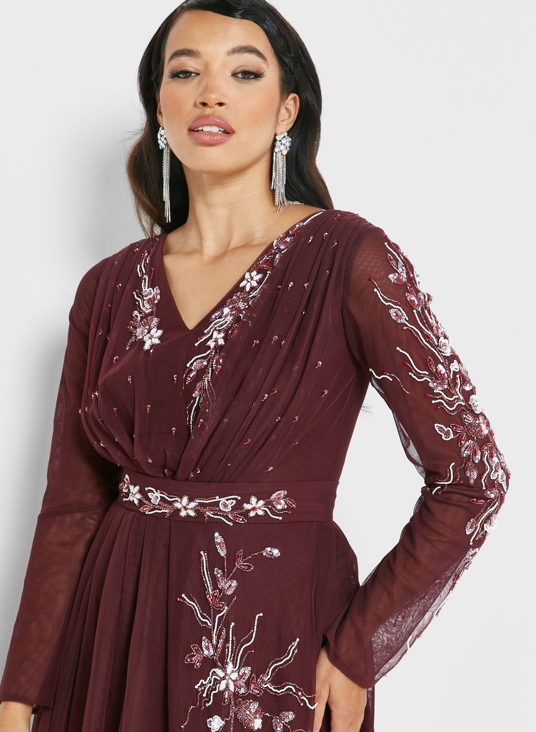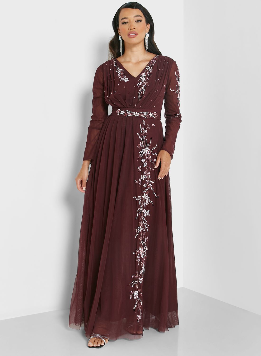| nameOriginal | V-Neck Embellished Tiered Dress |