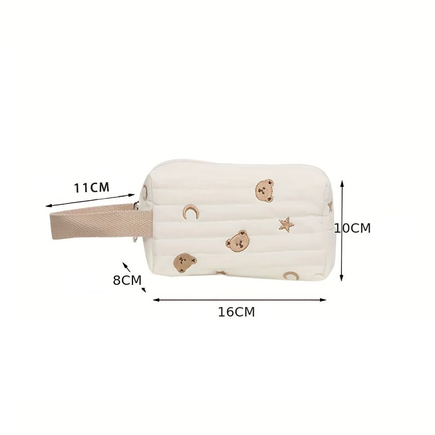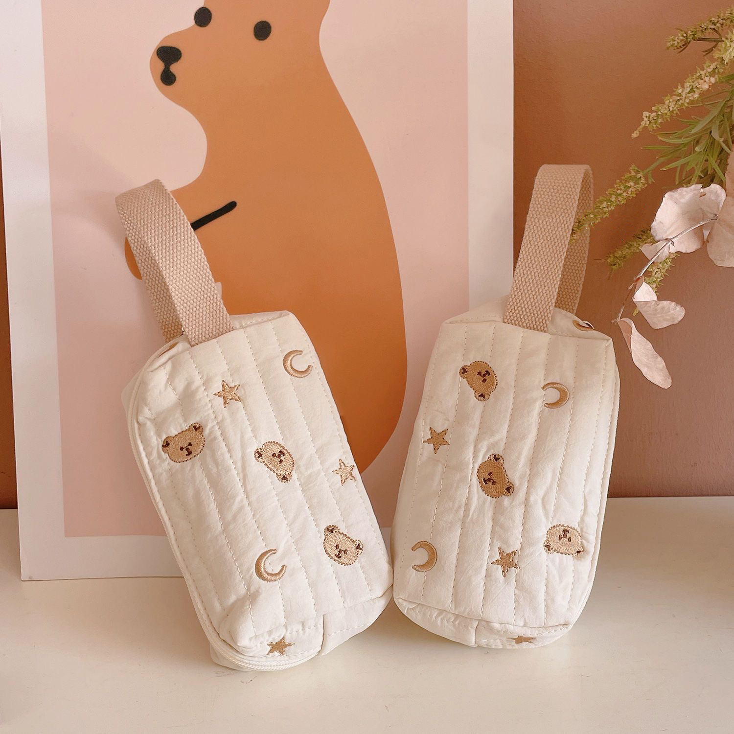 | nameOriginal | Embroidered Bears Makeup Bag Student Portable Stationery Bag Quilted Cotton Wrist Bag Cream Style Cute Storage Bag |
