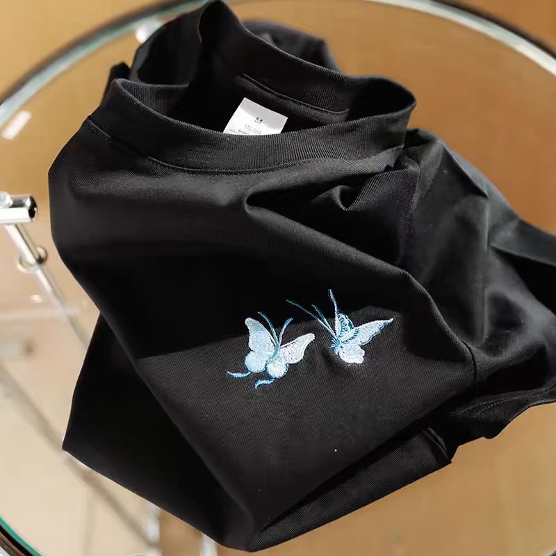 | nameOriginal | Embroidered Butterfly Ladies Shoulder Cotton Short Sleeve T-Shirt Women's Top 2024 Summer New Explosions Loose White |