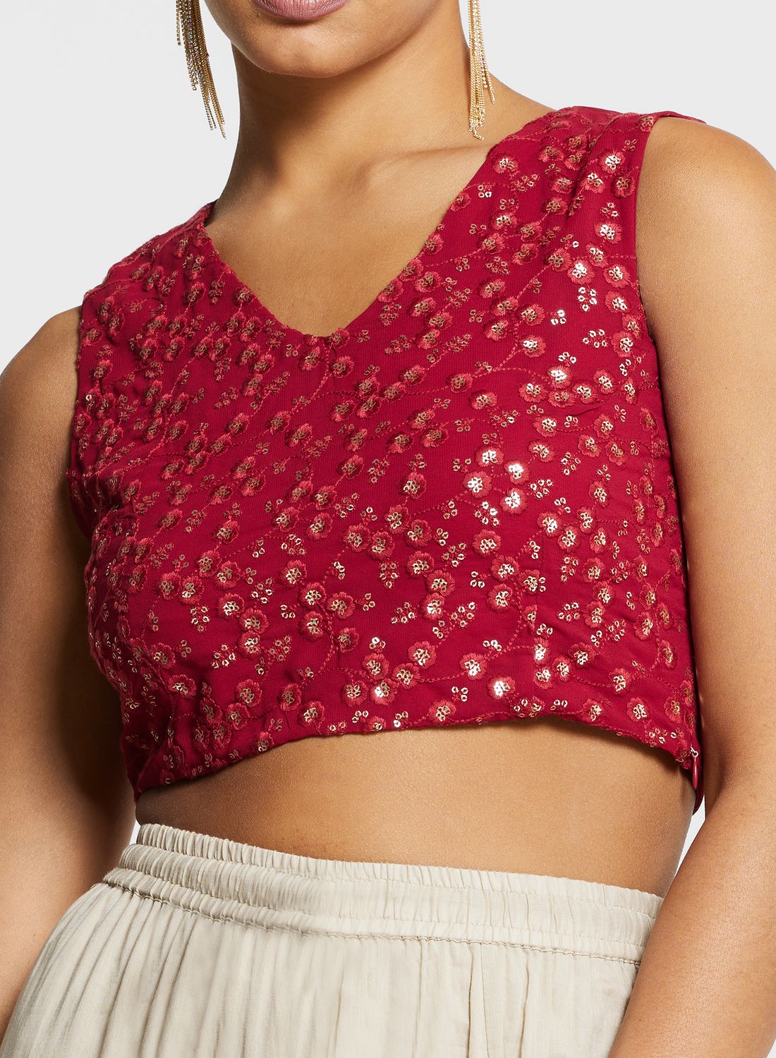 Embroidered Crop Top with V-Neck.