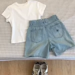 | nameOriginal | Embroidered denim shorts summer high waist wide leg bow |