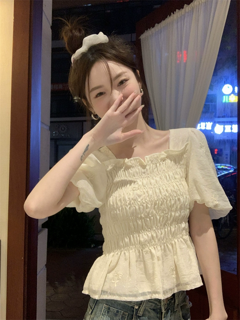 | nameOriginal | Embroidered design niche square collar puff short-sleeved shirt |