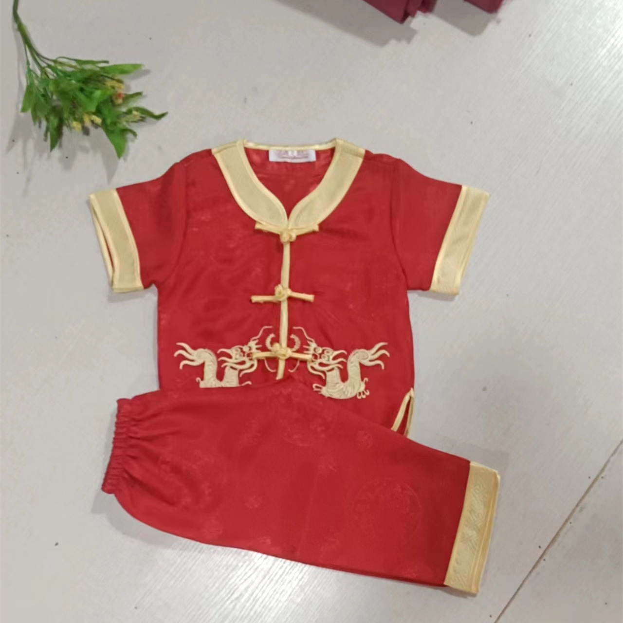 | nameOriginal | Embroidered Dragon Children's Tang Suit Boys' Satin Short-sleeved Trousers Ethnic Costume Performance Suit Foreign Trade New Year Dress |