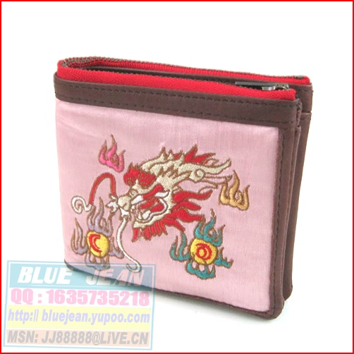 Embroidered dragon TOUGH knitted short girl's style women's Japanese and Korean style wallet women's wallet retro zipper wallet