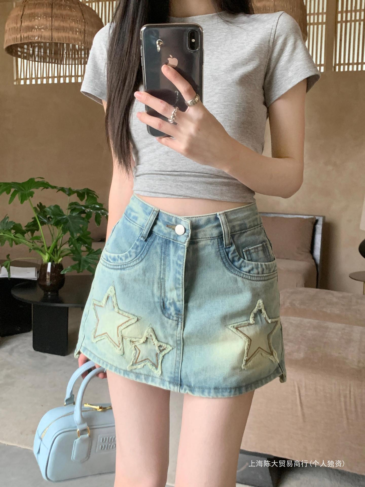 | nameOriginal | Embroidered Five-pointed Star Hot Girl Pants Skirt Summer Denim Skirt Women's Hip Skirt American Style Anti-glare Retro CD |