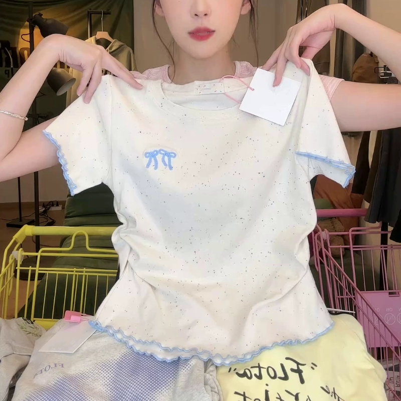 Embroidered front shoulder short sleeve design niche bow