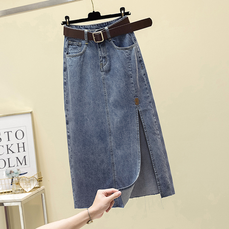 | nameOriginal | Embroidered High Waist Denim Skirt Women's Mid-length 2021 Summer New Slim Look Split Sheath A- line Dress Trendy |