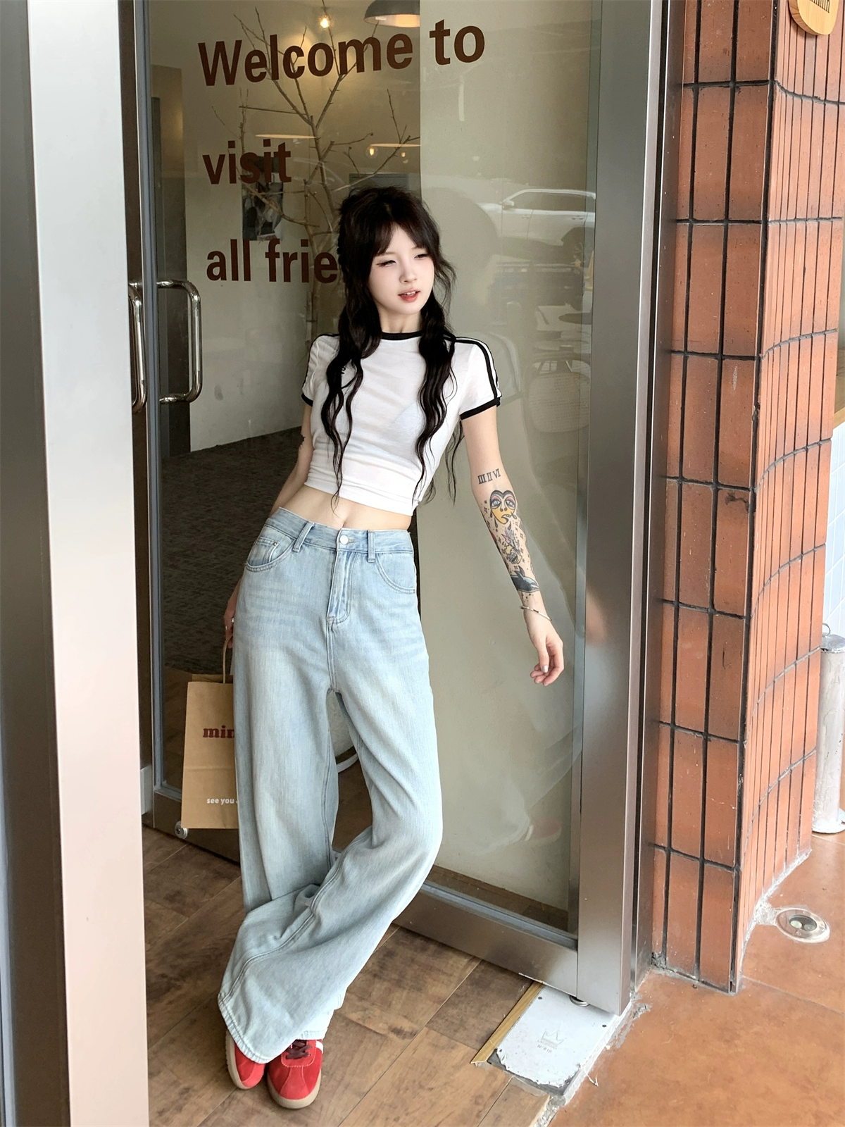| nameOriginal | Embroidered high-waisted straight wide-leg denim trousers with bow |