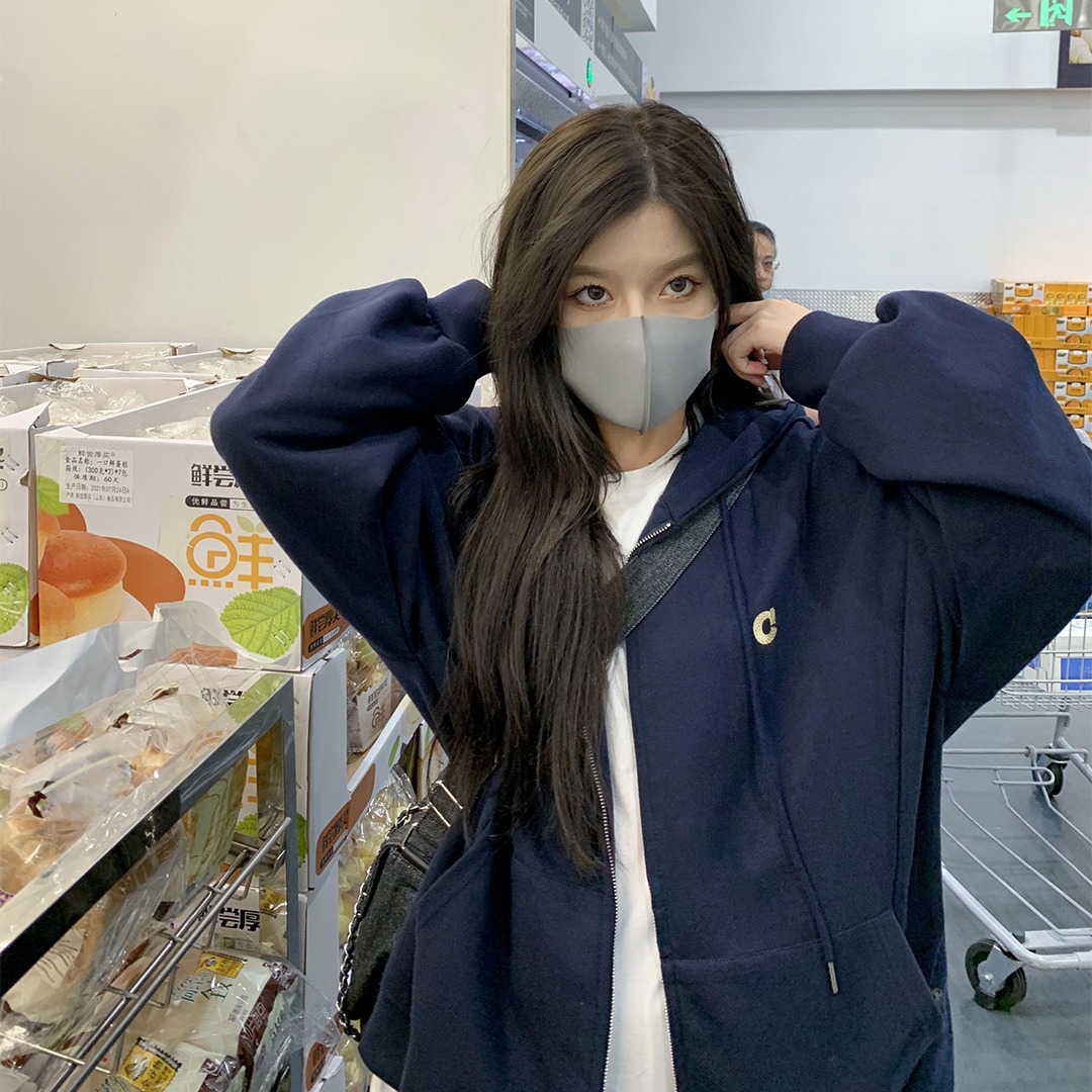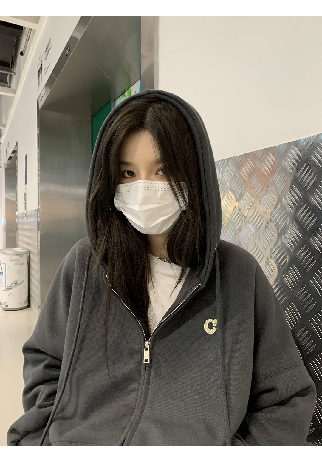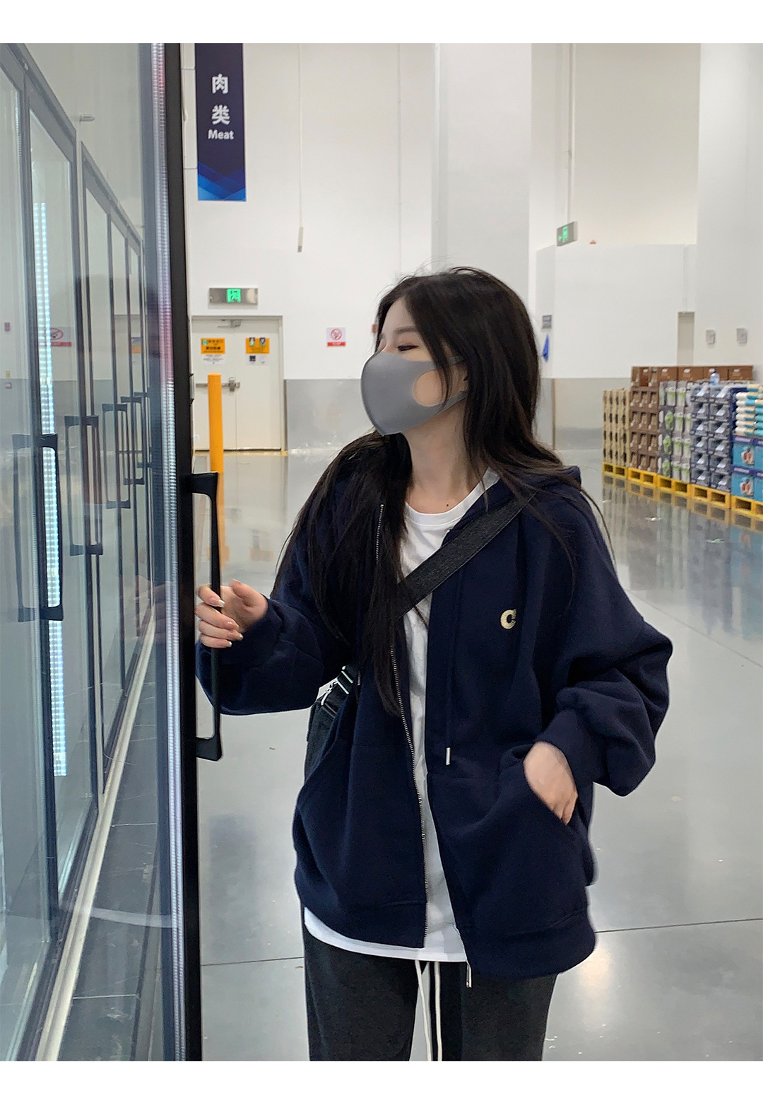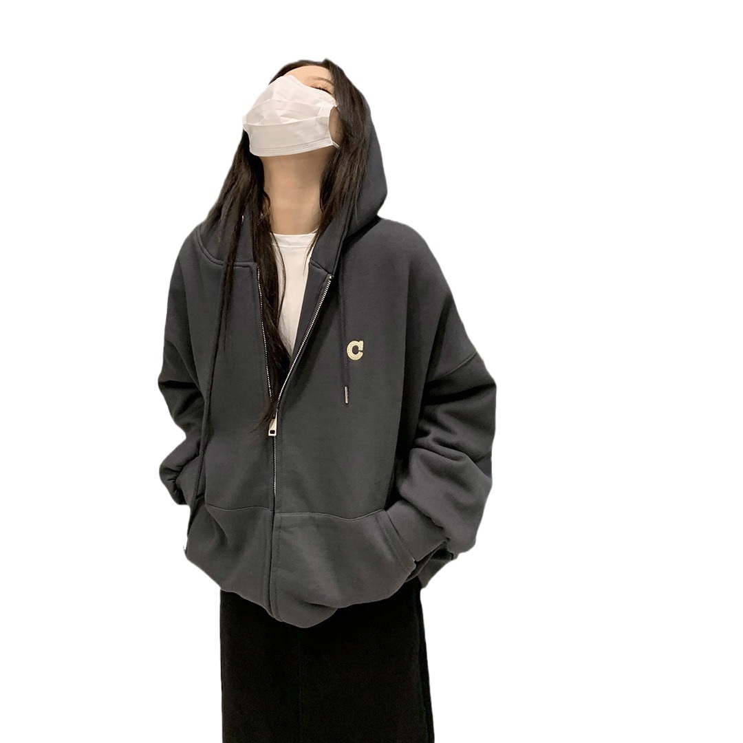 | nameOriginal | Embroidered hooded long-sleeved cardigan zipper sweater coat for women spring/autumn/winter fleece-lined thickened loose lazy style top for women |
