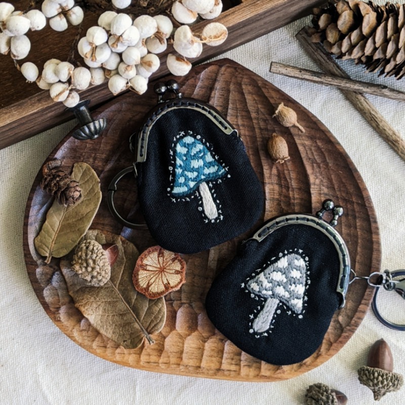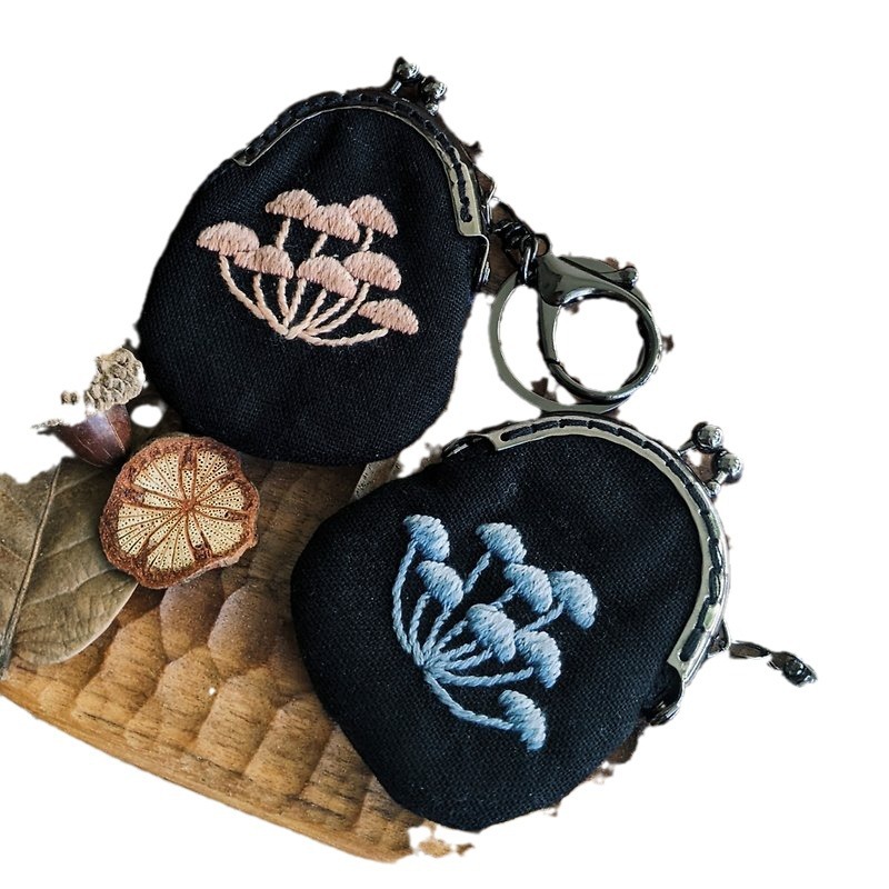 Embroidered kiss lock bag late night magic mushroom coin purse keychain girls' fashion lipstick bag Vintage Embroidered bag