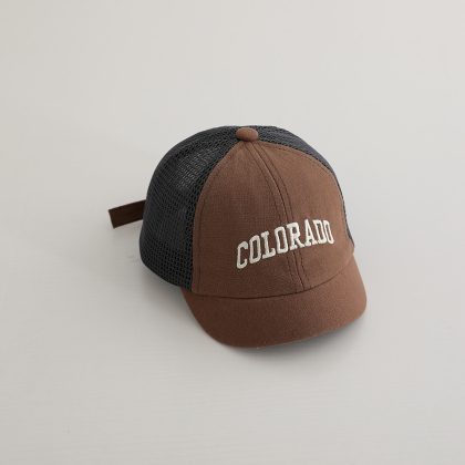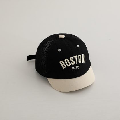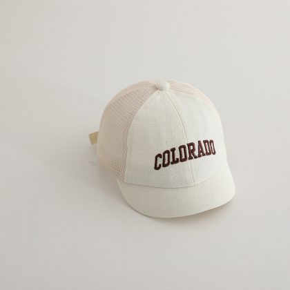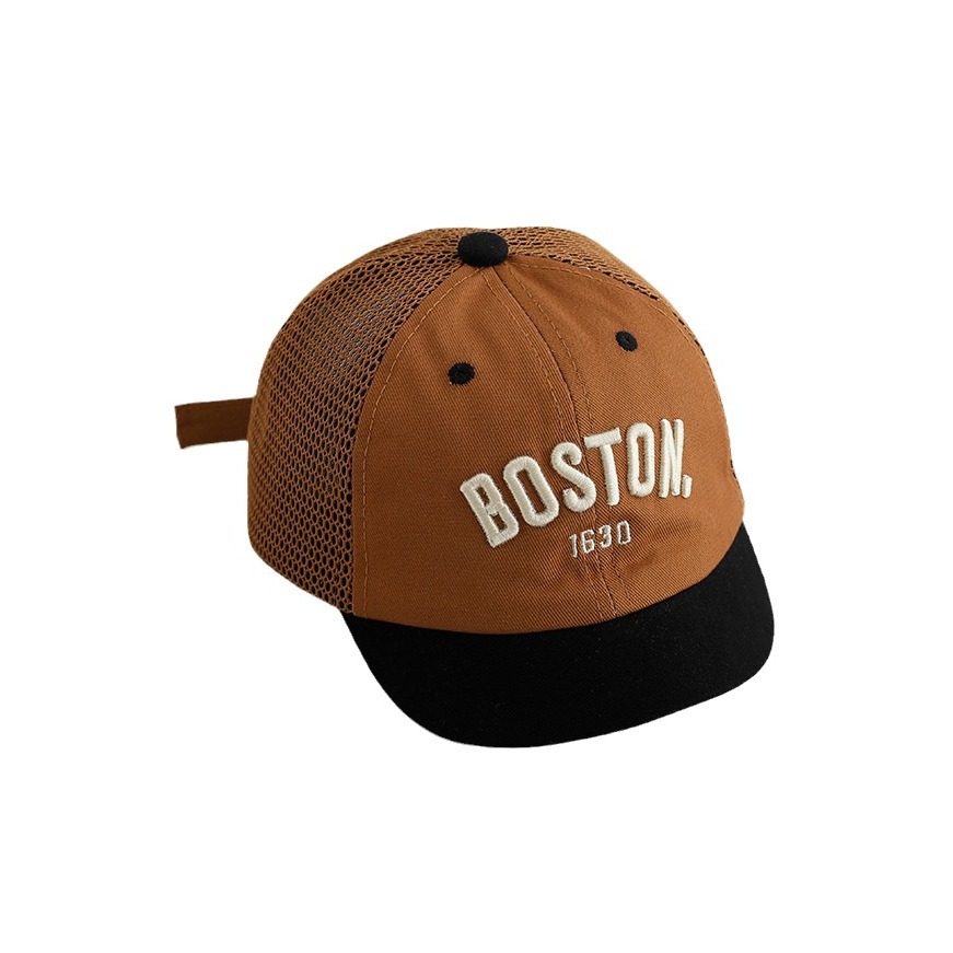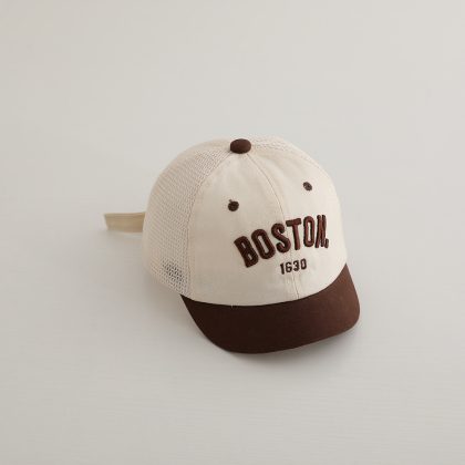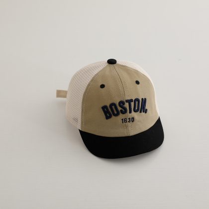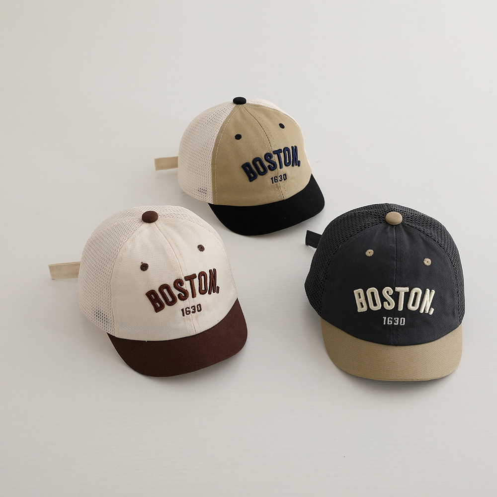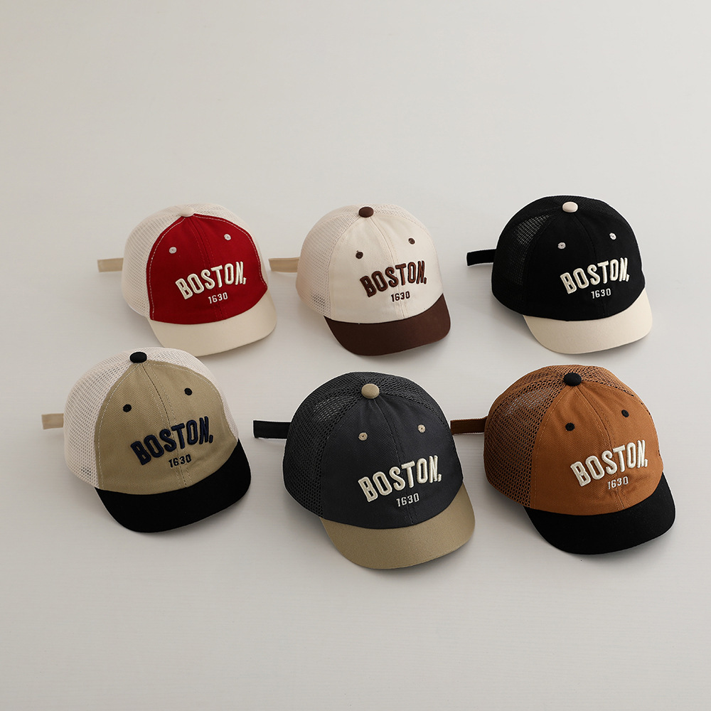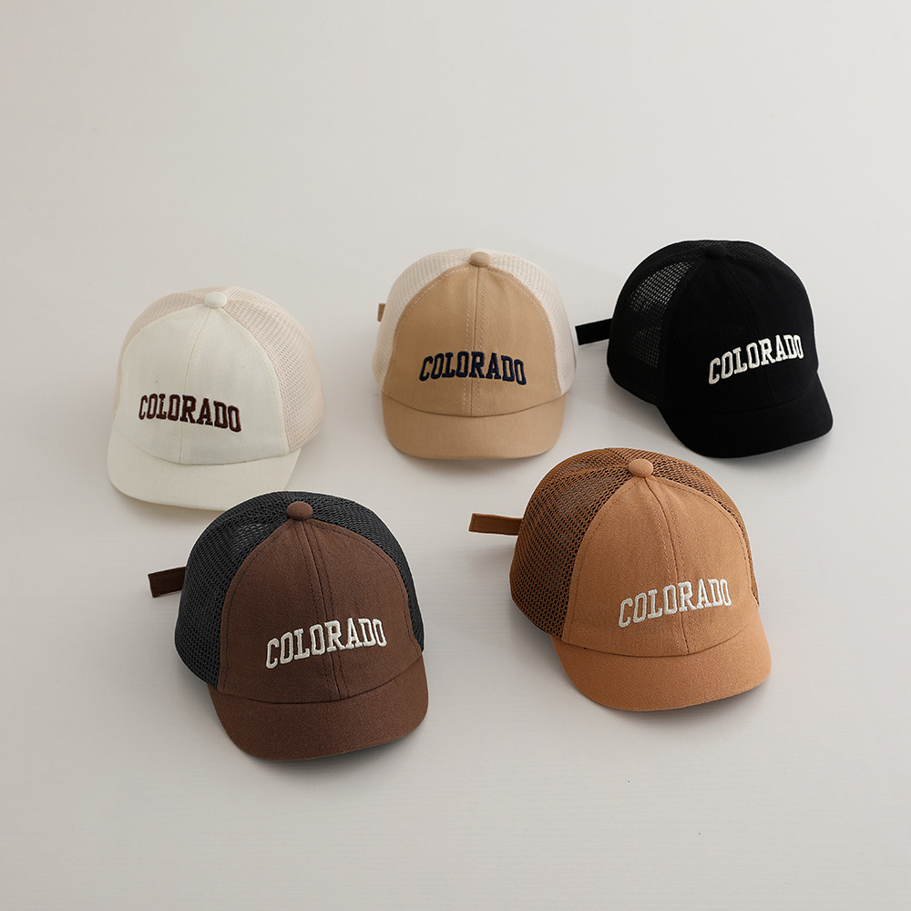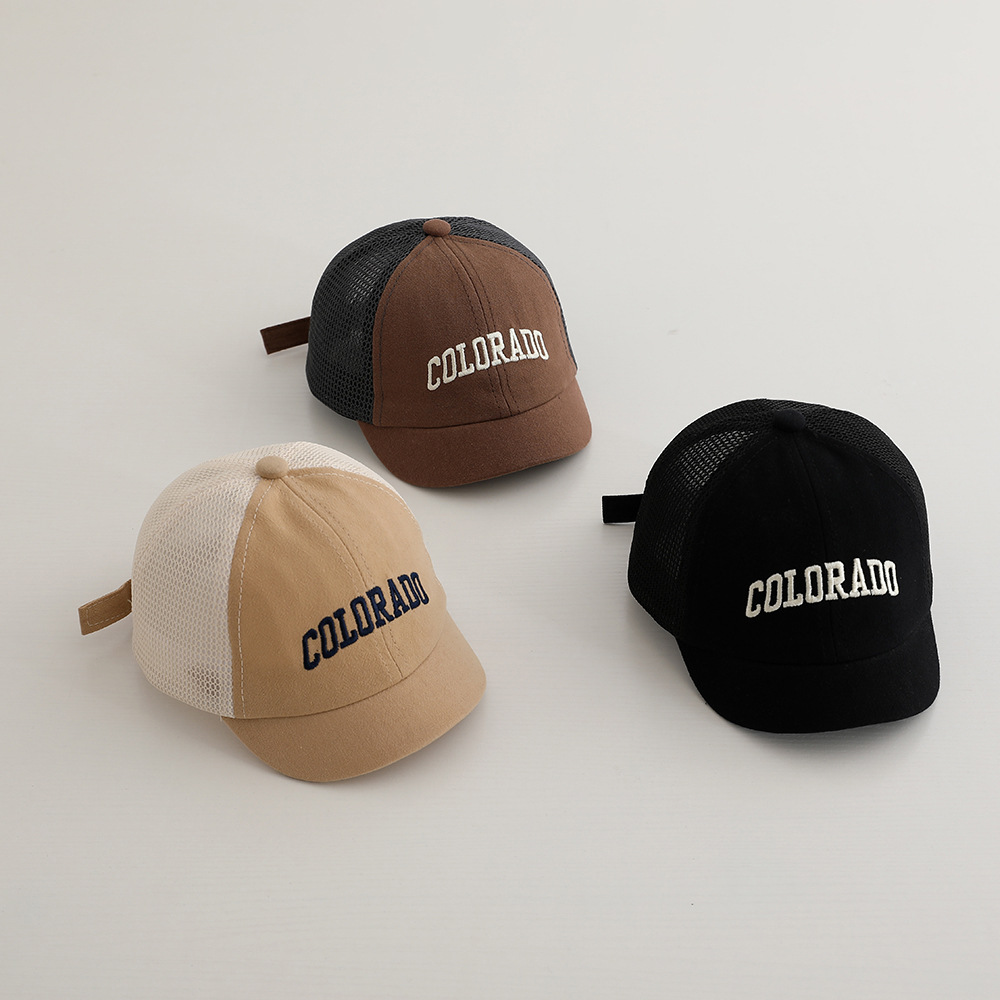Embroidered Letter Baby Hat Spring and Summer Thin Breathable Baby Duck Tongue Net Cap Korean Style Short Brim Children’s Net Cap Summer