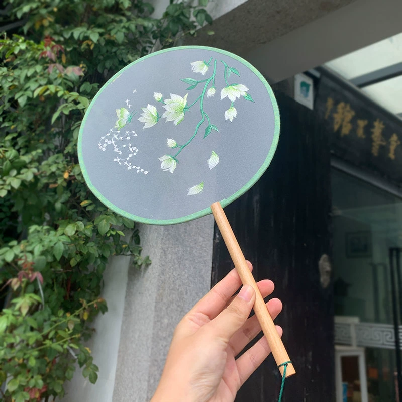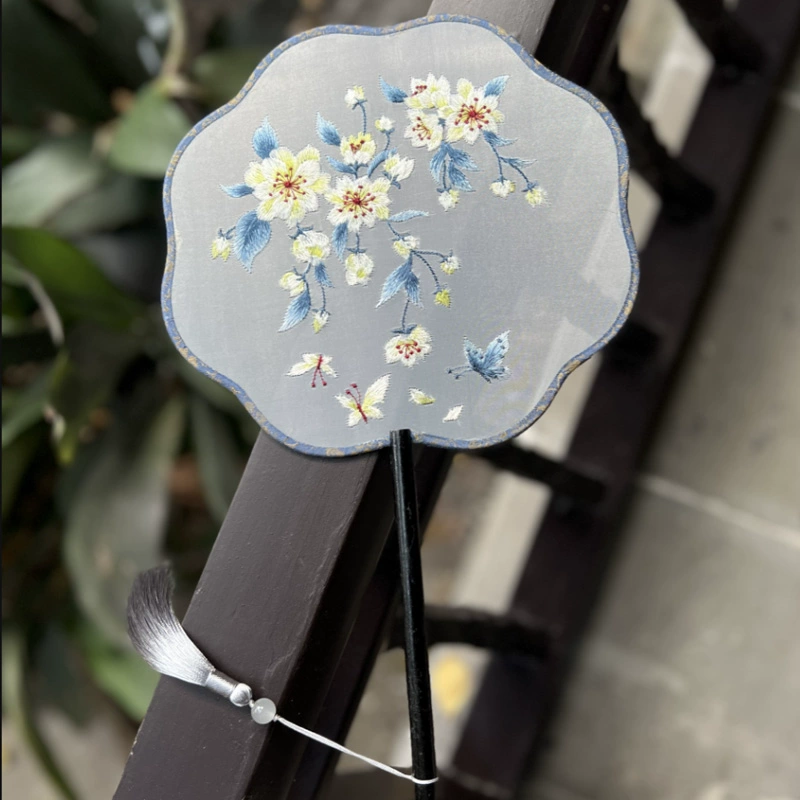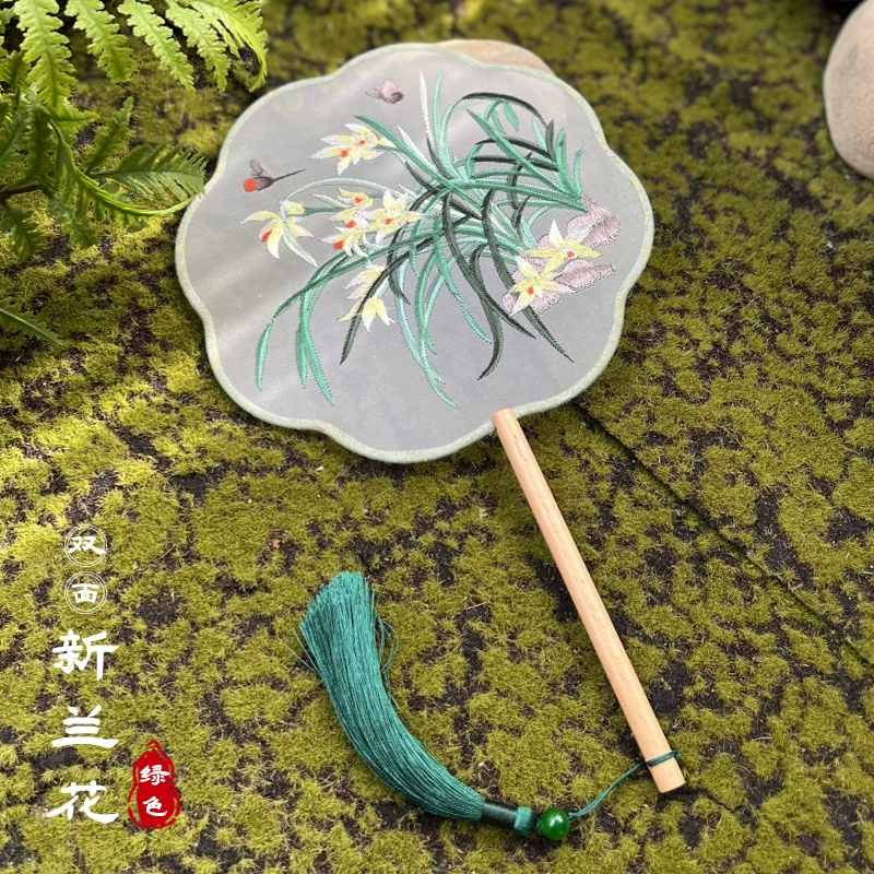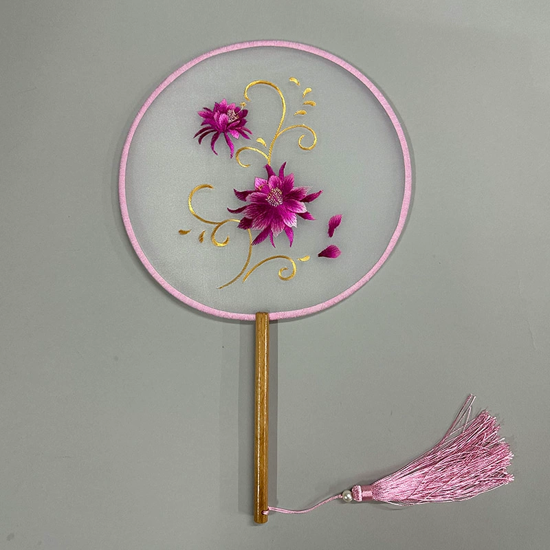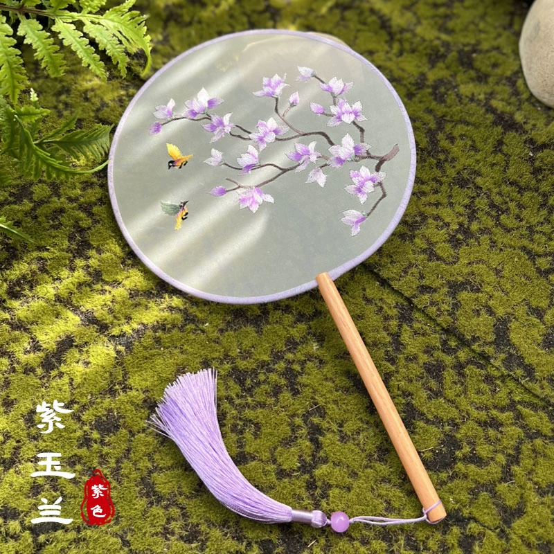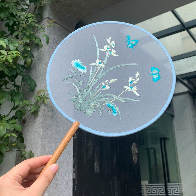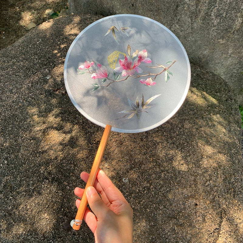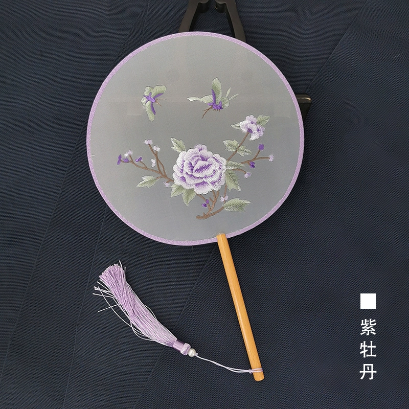 Embroidered round fan, ancient style round fan, dance fan, classical dance fan, double-sided embroidered round fan for dance