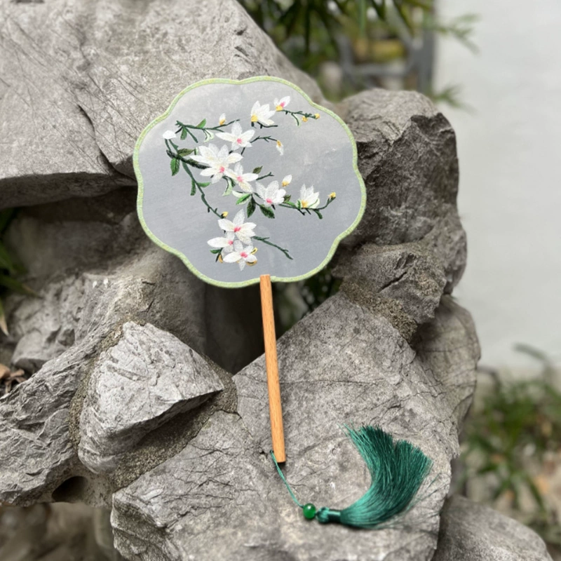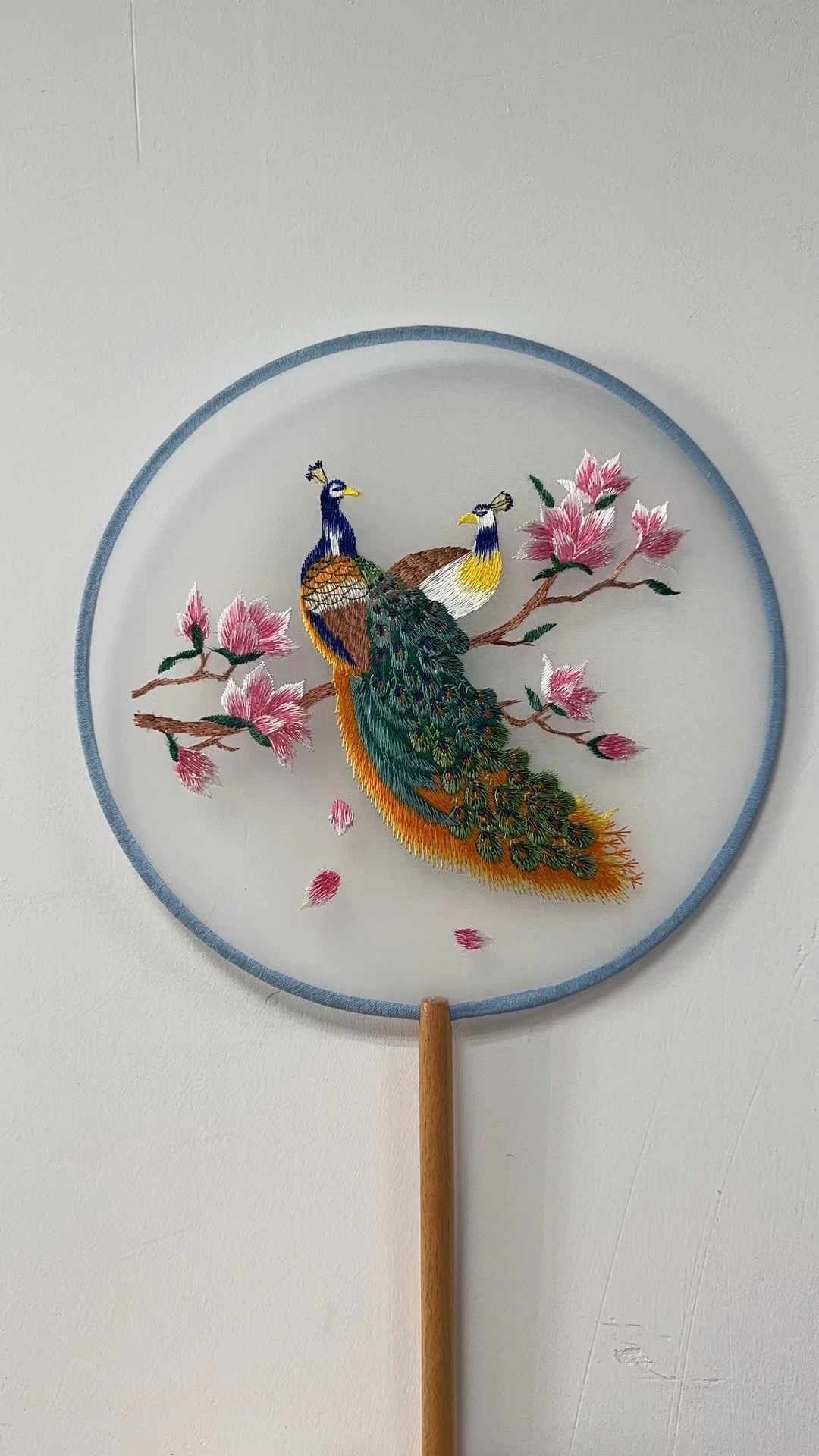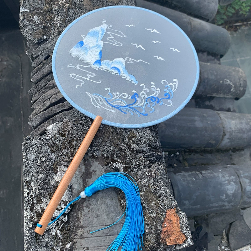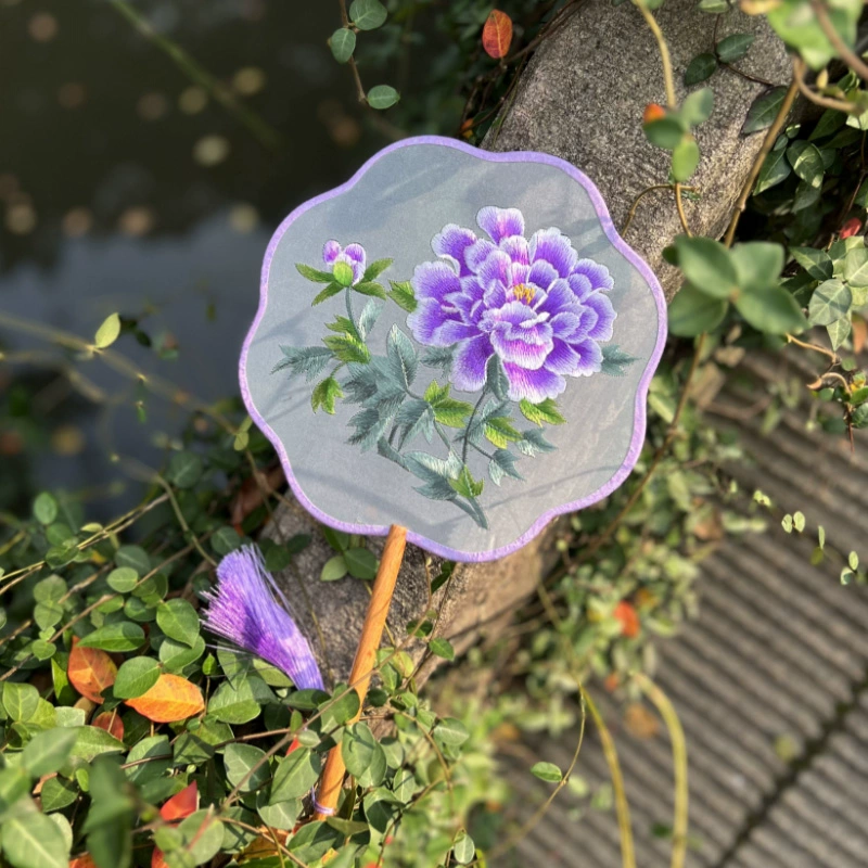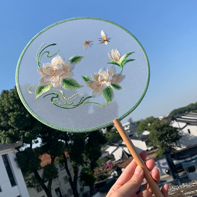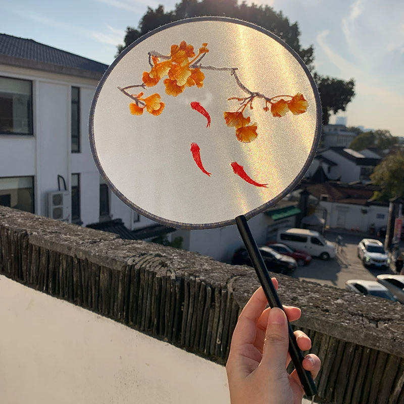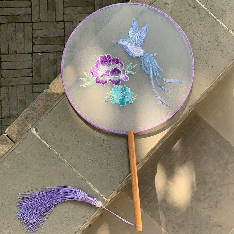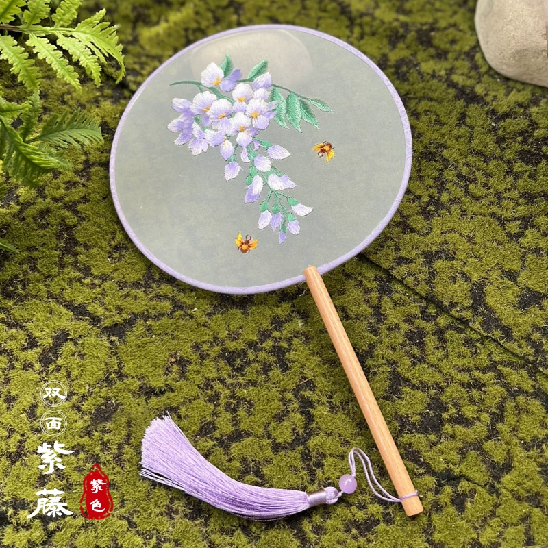 Embroidered round fan, ancient style round fan, dance fan, classical dance fan, double-sided embroidered round fan for dance