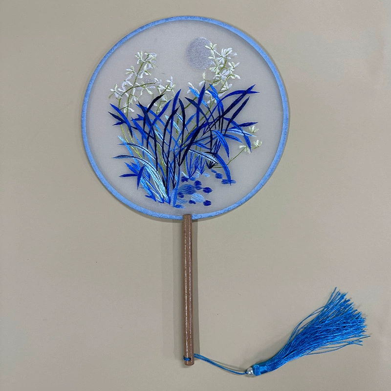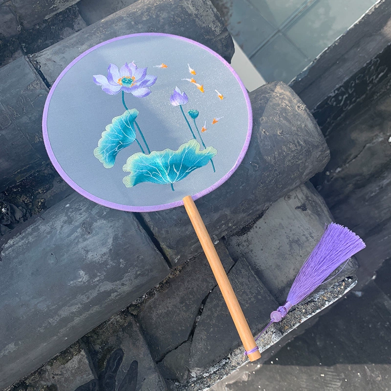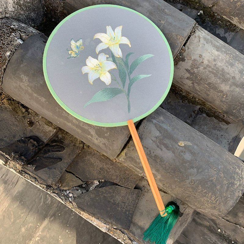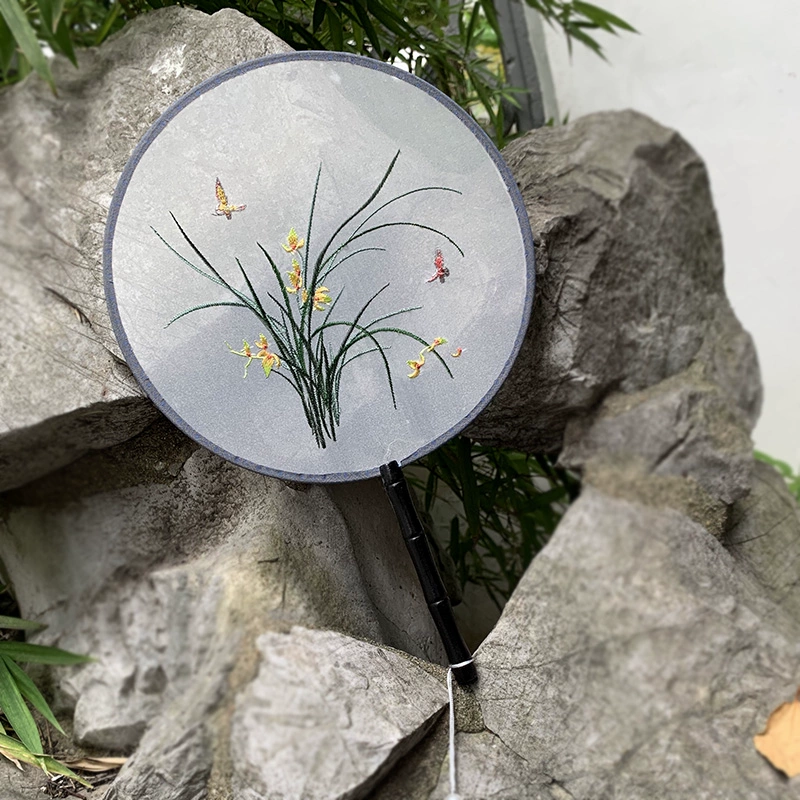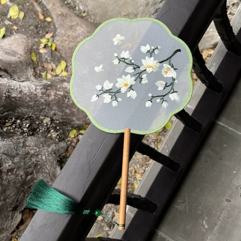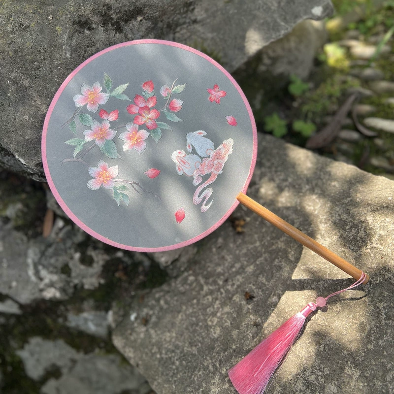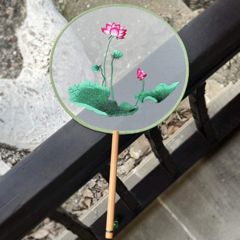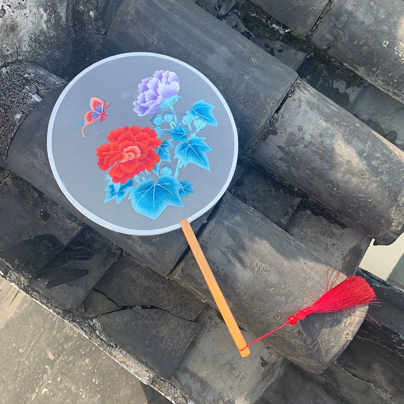 Embroidered round fan, ancient style round fan, dance fan, classical dance fan, double-sided embroidered round fan for dance