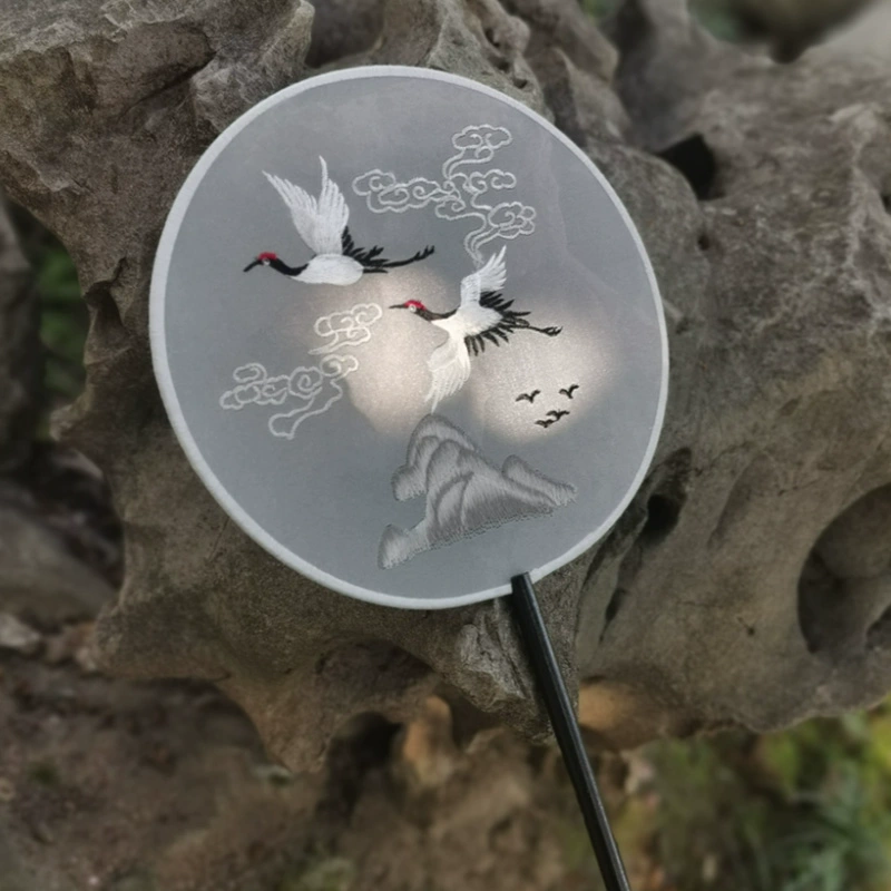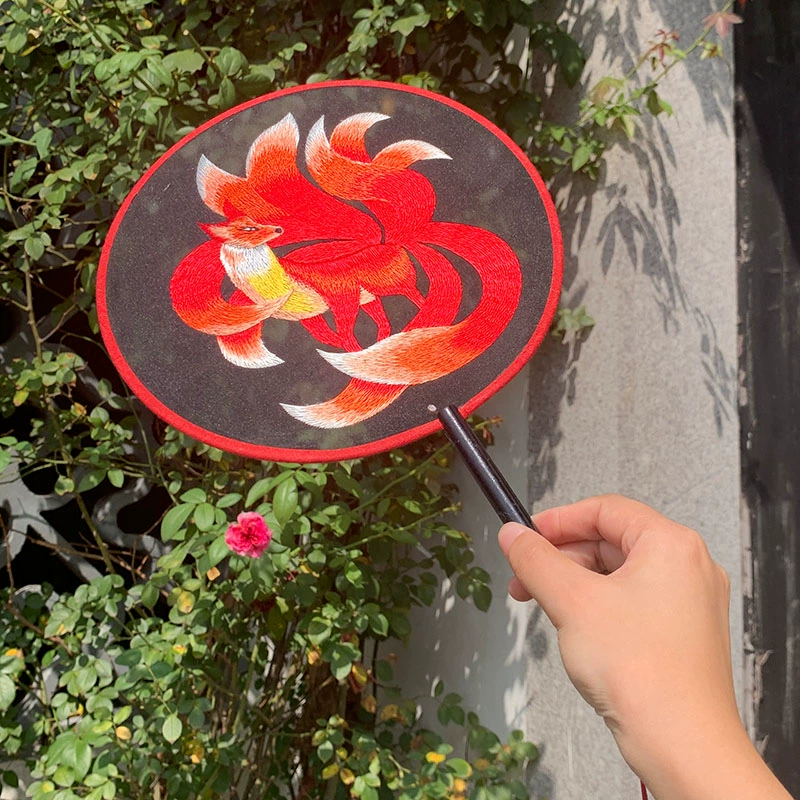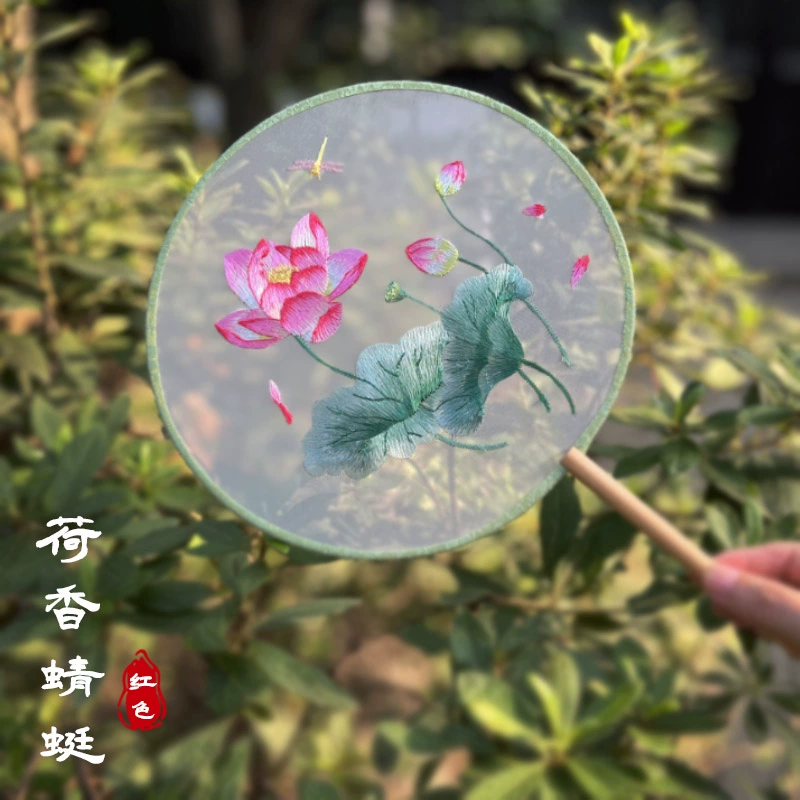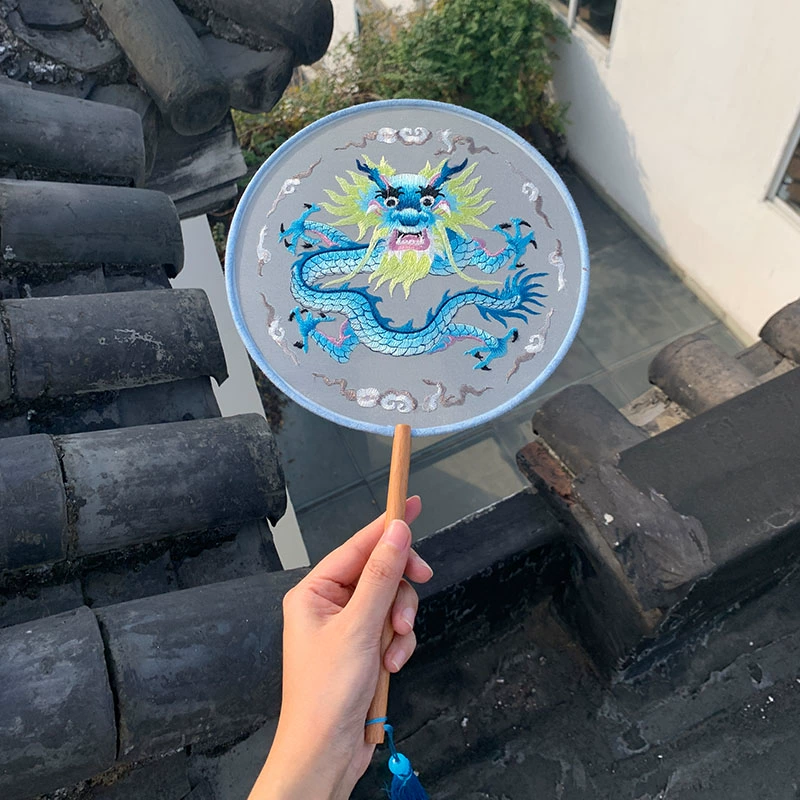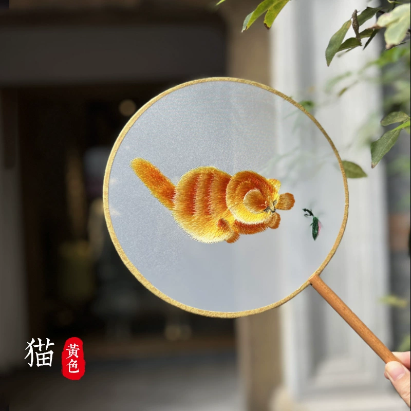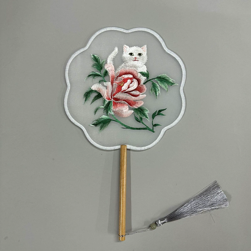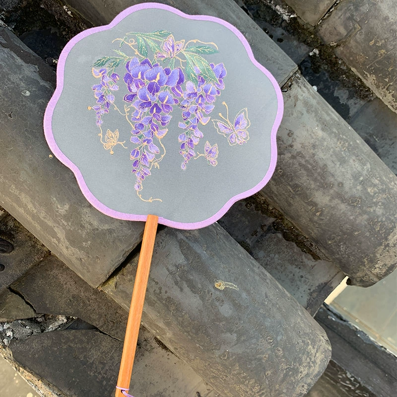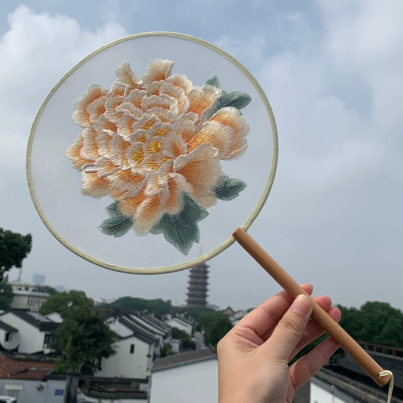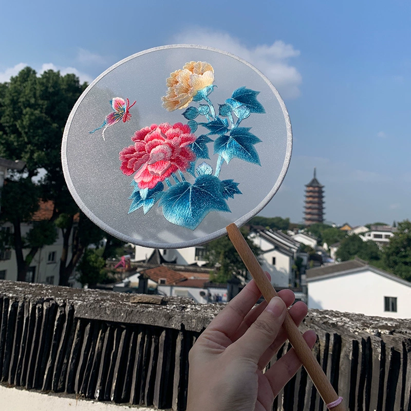 Embroidered round fan, ancient style round fan, dance fan, classical dance fan, double-sided embroidered round fan for dance