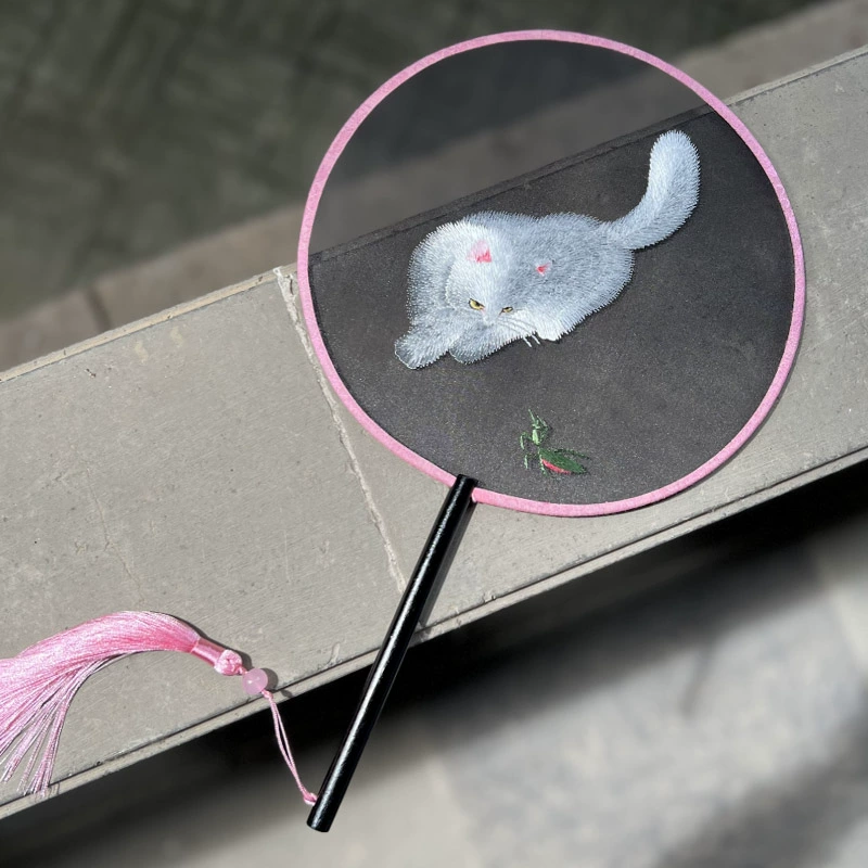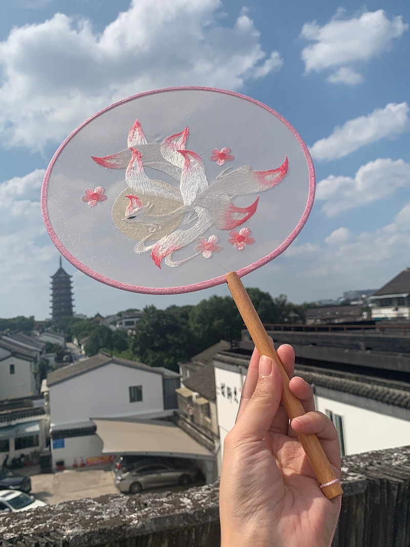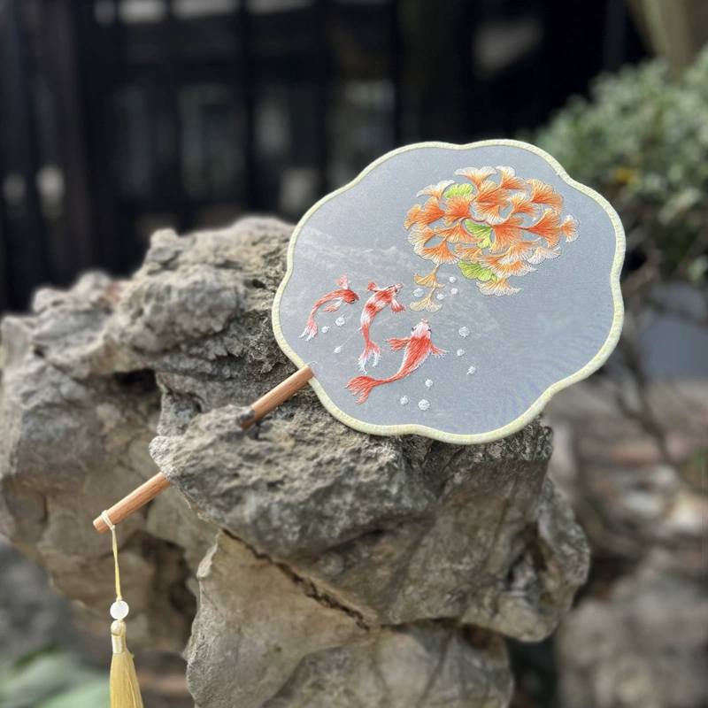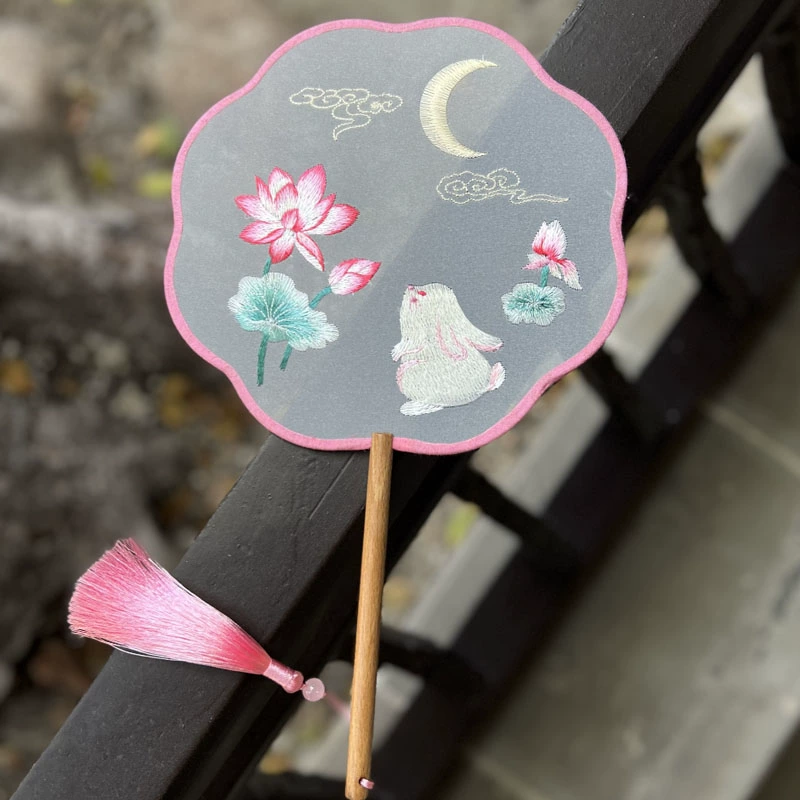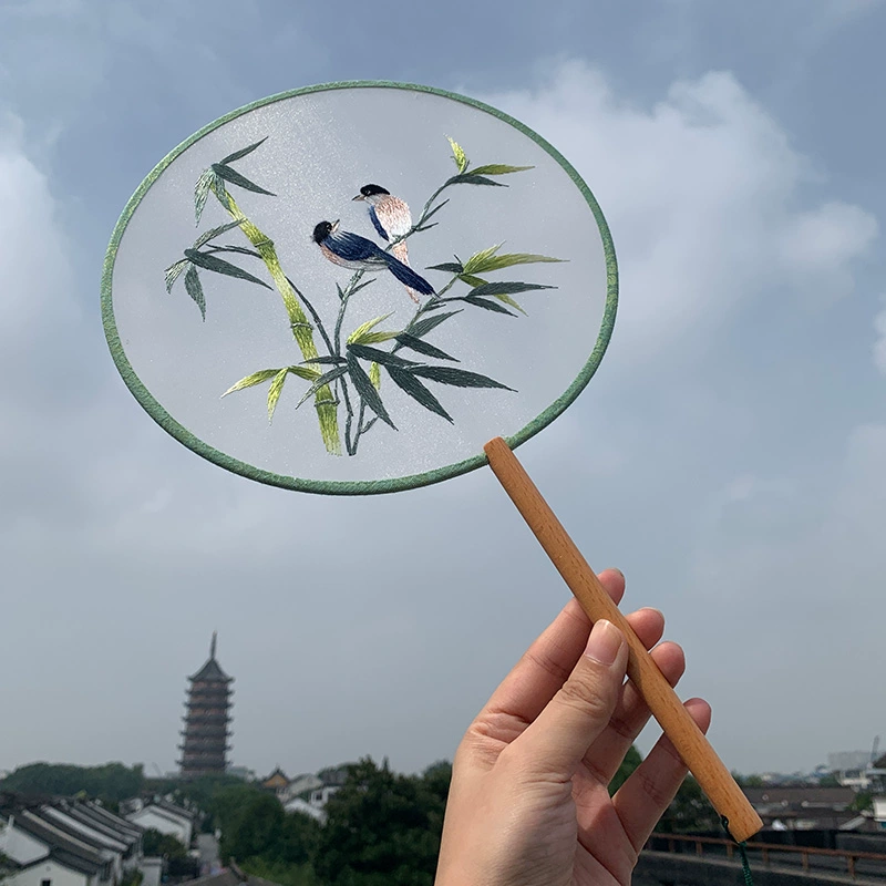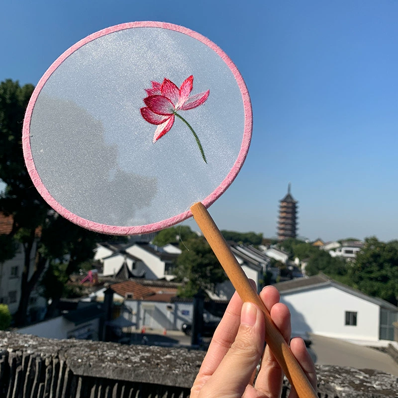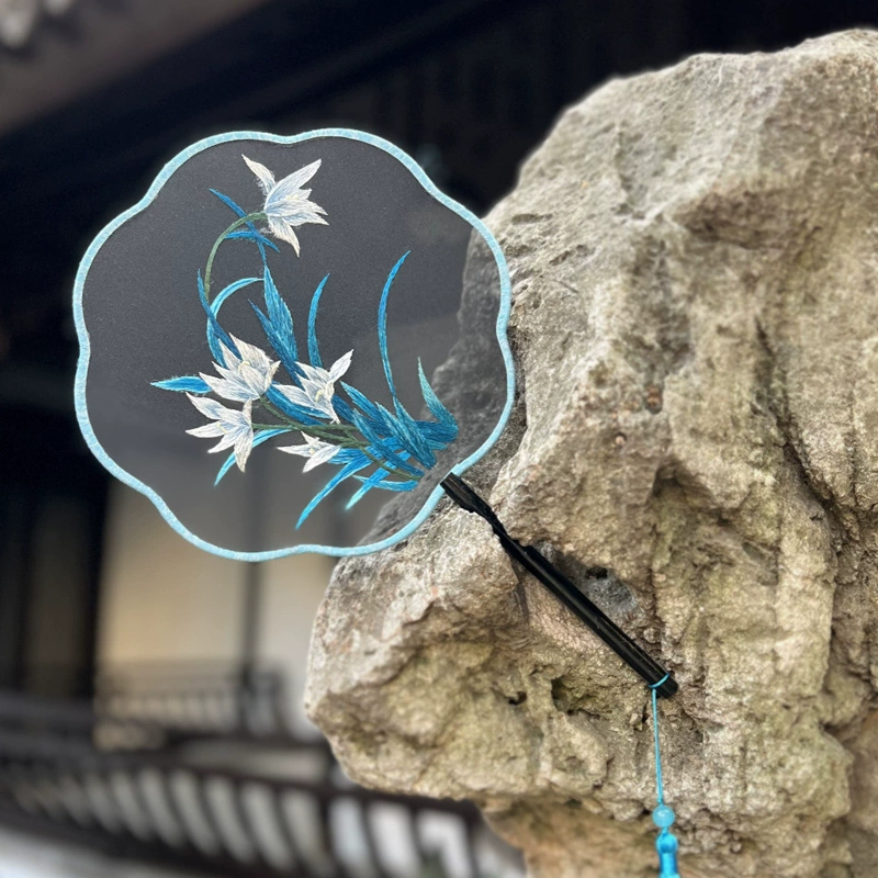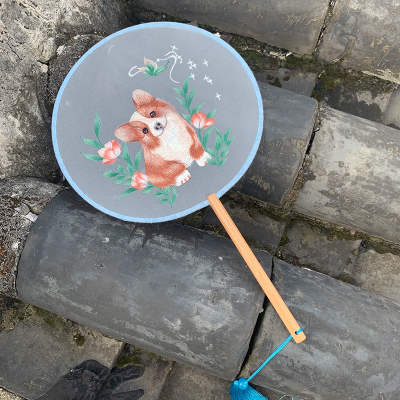 Embroidered round fan, ancient style round fan, dance fan, classical dance fan, double-sided embroidered round fan for dance
