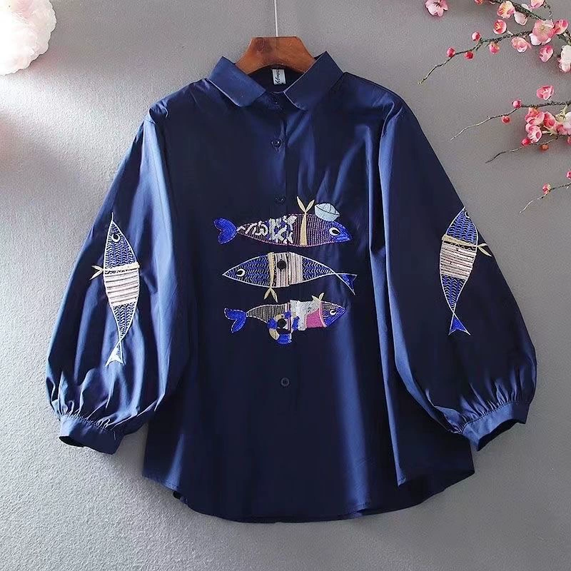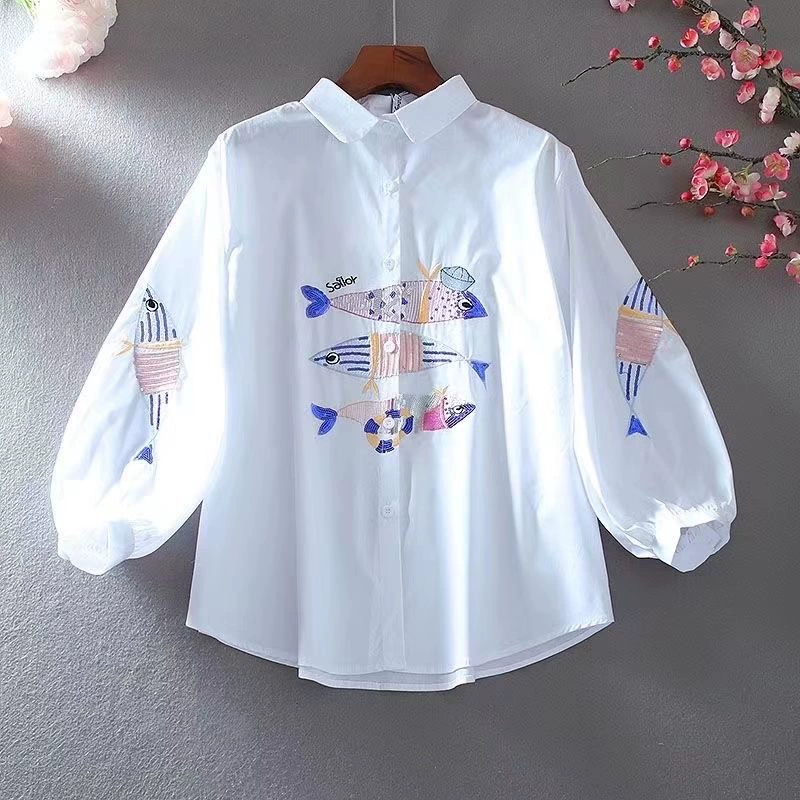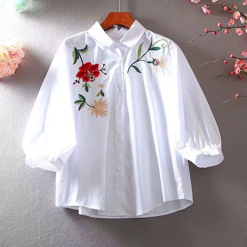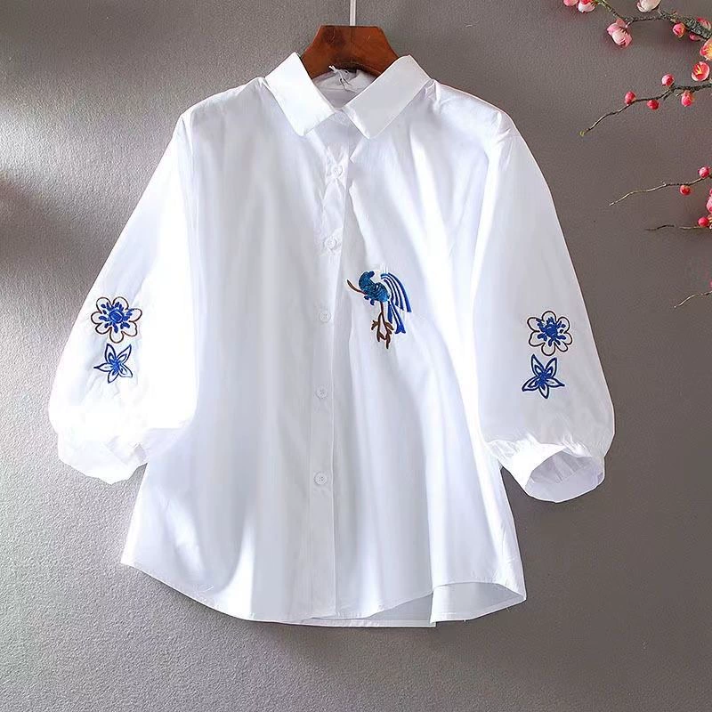 | nameOriginal | Embroidered shirt, loose, casual, lantern sleeves, elegant and artistic |