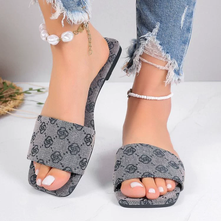 Embroidered square toe flat outer large size beach sandals