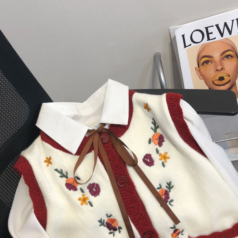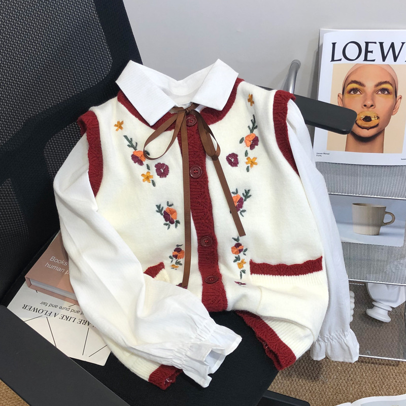| nameOriginal | Embroidered vintage cardigan knitted vest for women 2024 Spring and Autumn New Western style outer wear overlapping waistcoat loose sweater |