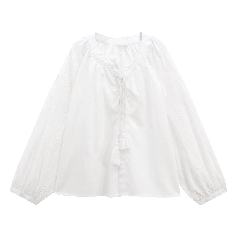 Embroidered white spring casual loose top with lace