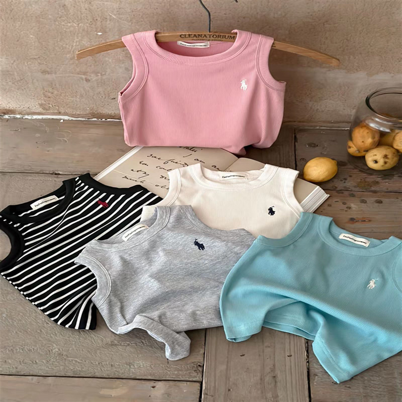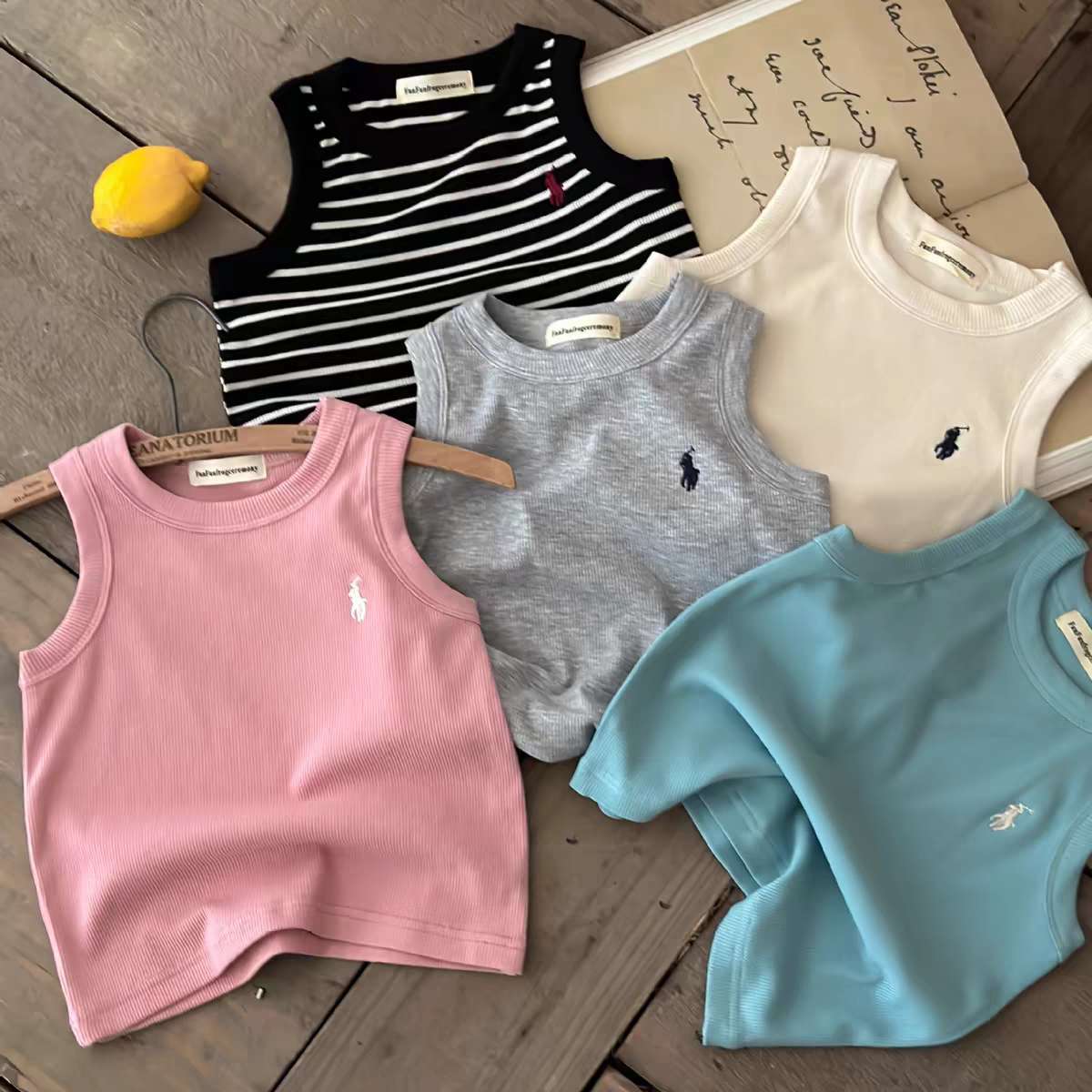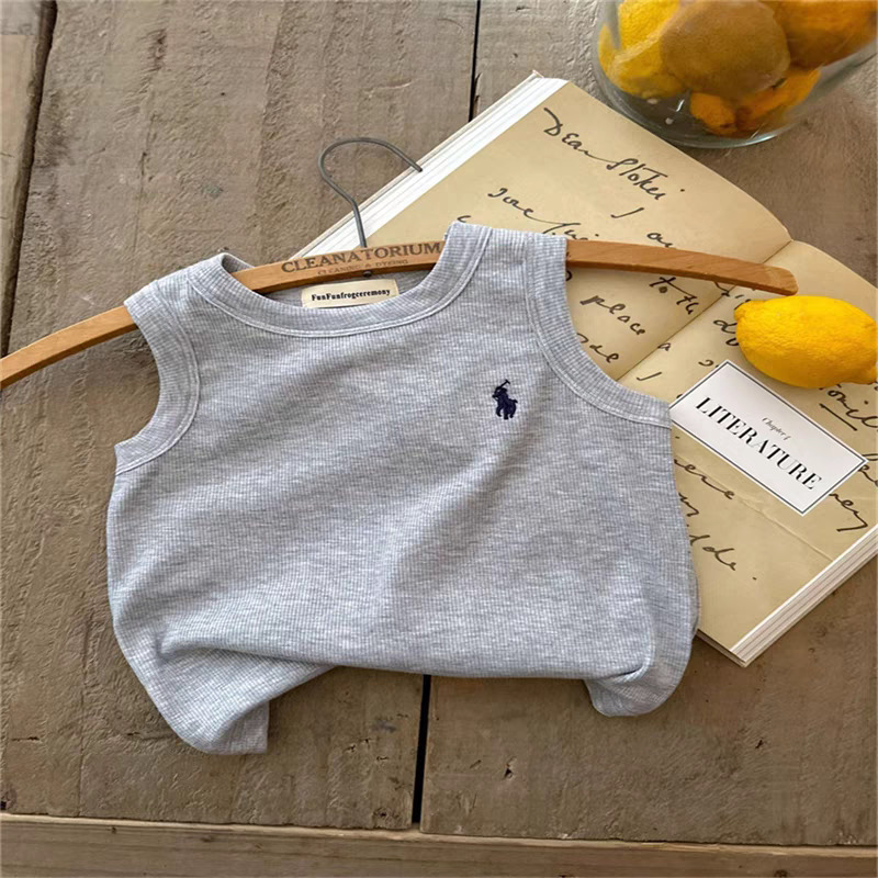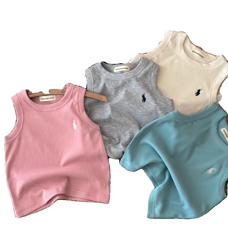 | nameOriginal | [embroidery] children's vest 2024 summer new boys and girls Japanese fashion brand solid color sleeveless baby elastic stripes |