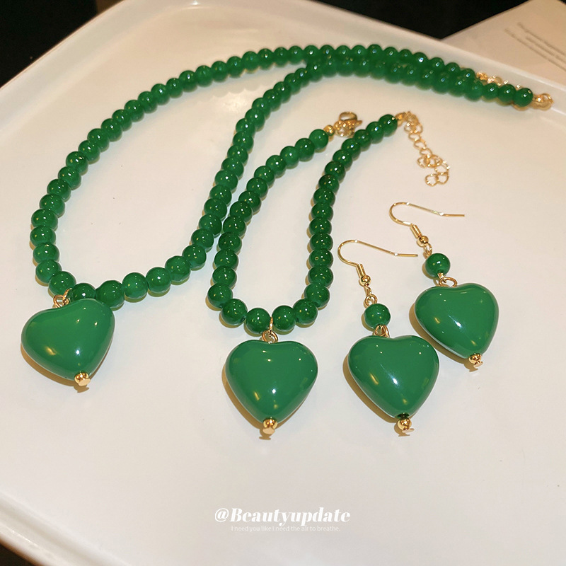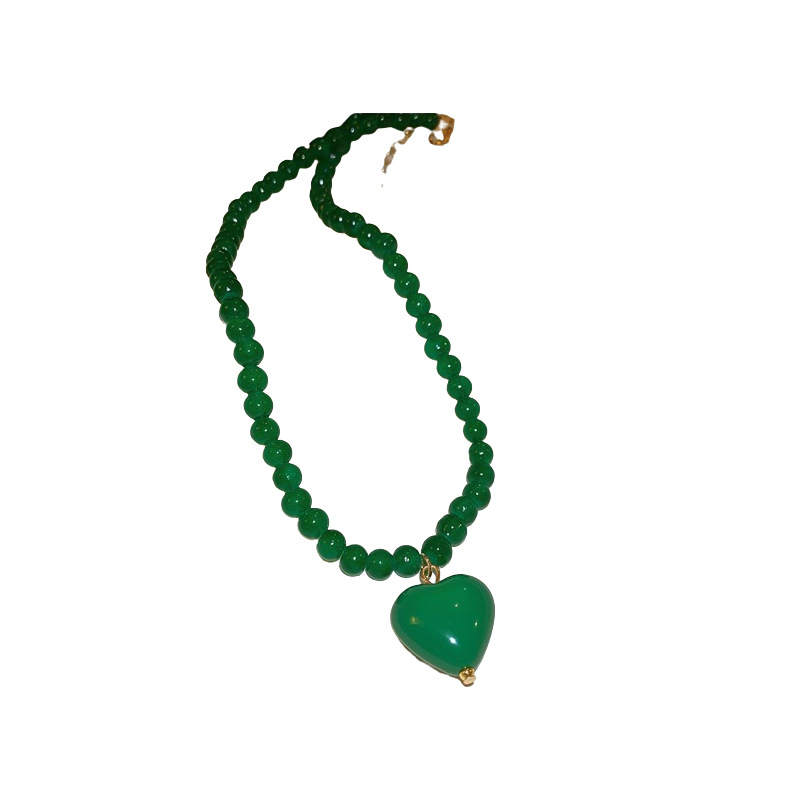 | nameOriginal | Emerald Agate Beads Love Pendant Necklace New Chinese Simple Beaded Clavicle Chain Vintage Fashion Necklace for Women |