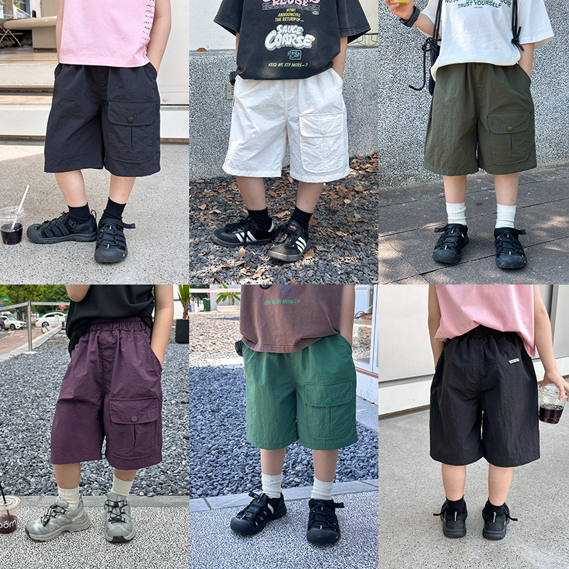 | nameOriginal | Emo Beibei Boys 2024 Summer Nylon Wrinkle Pants Baby Handsome Nail Buckle Pocket Washed Tooling Shorts |