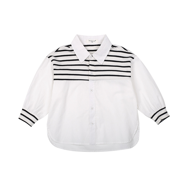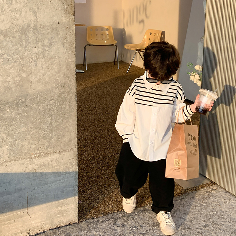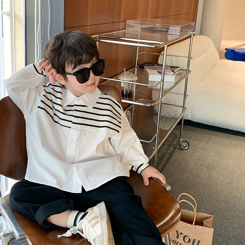 | nameOriginal | Emo Beibei Boys Shirt 2024 Spring Korean Style Handsome Striped Shirt Baby Loose Contrast Lapel Top |