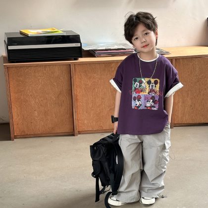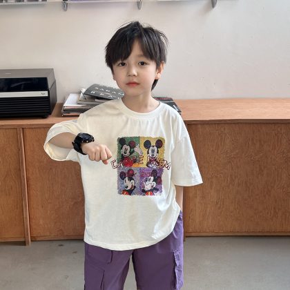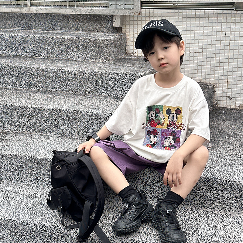 | nameOriginal | Emo Beibei Children's Western Style Cool Top 2024 Summer Four-compartment Cartoon Animation Cute Short-sleeved T-shirt for Boys and Girls |