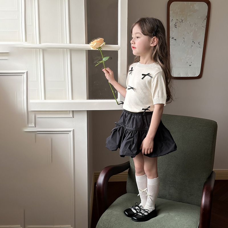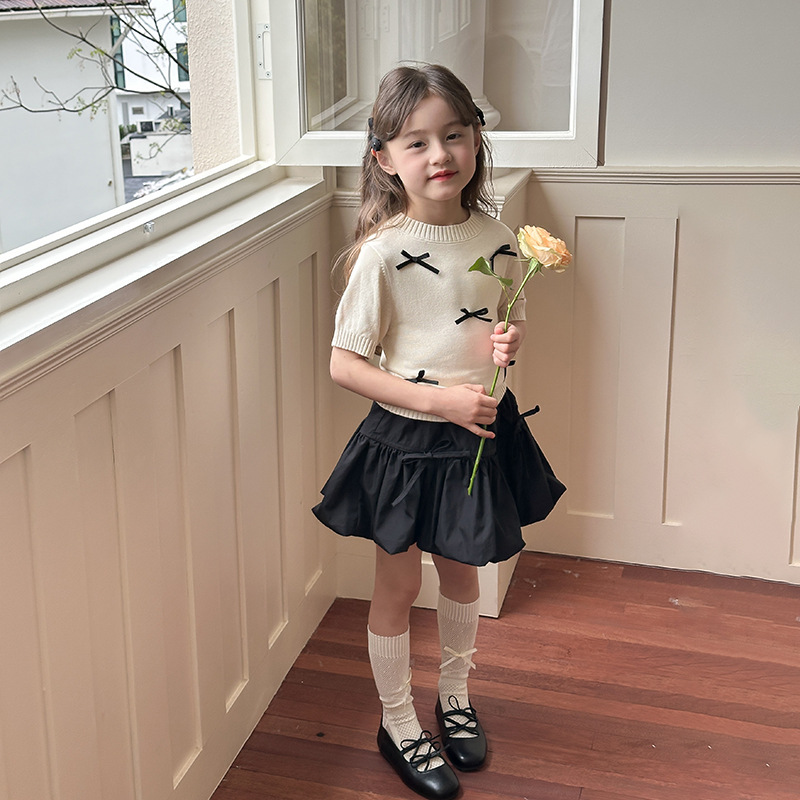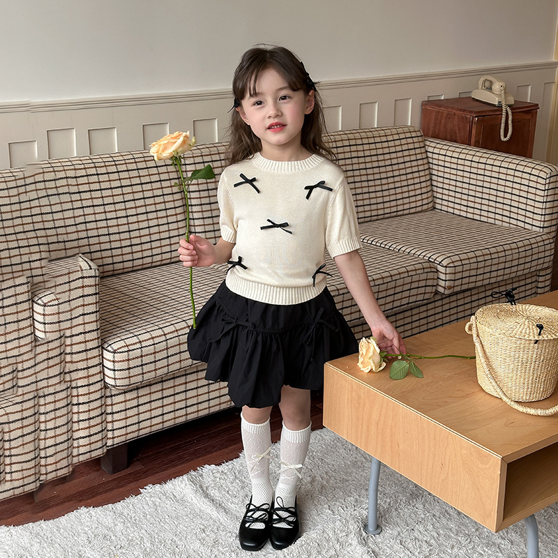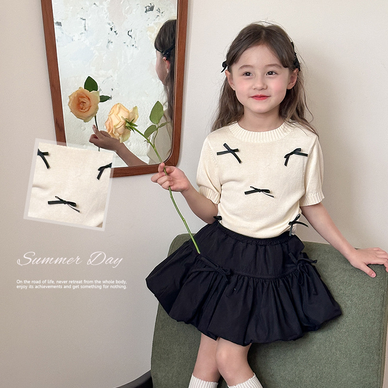 | nameOriginal | Emo Beibei Girls' Baby Three-dimensional Bow Short-sleeved 2024 Summer Children's Bubble-sleeved Knitted T-shirt Top |