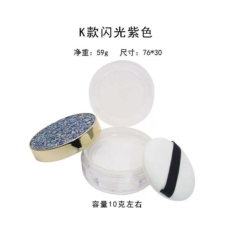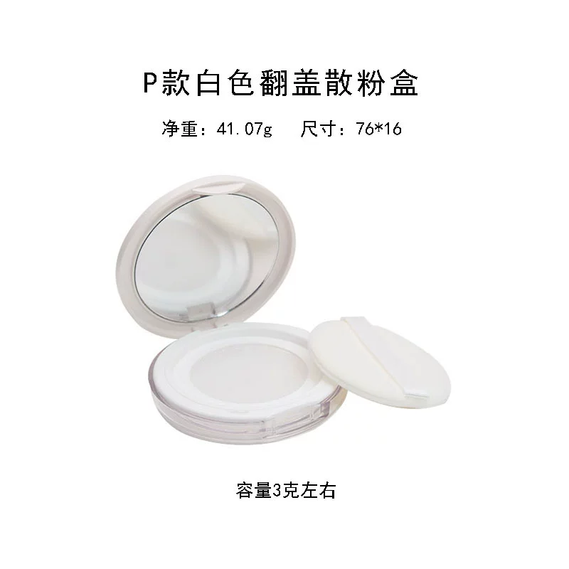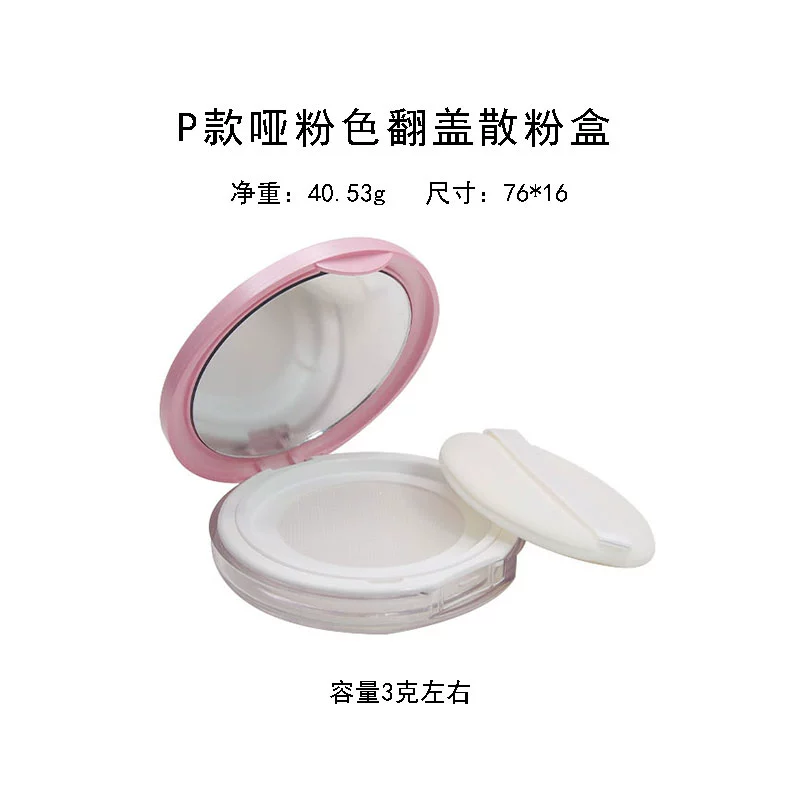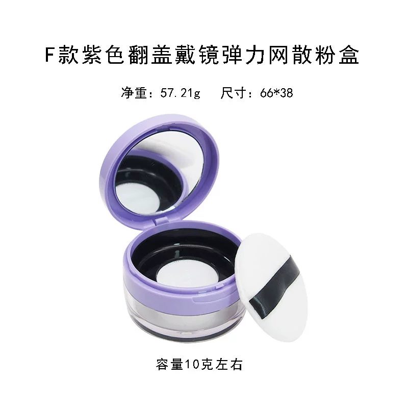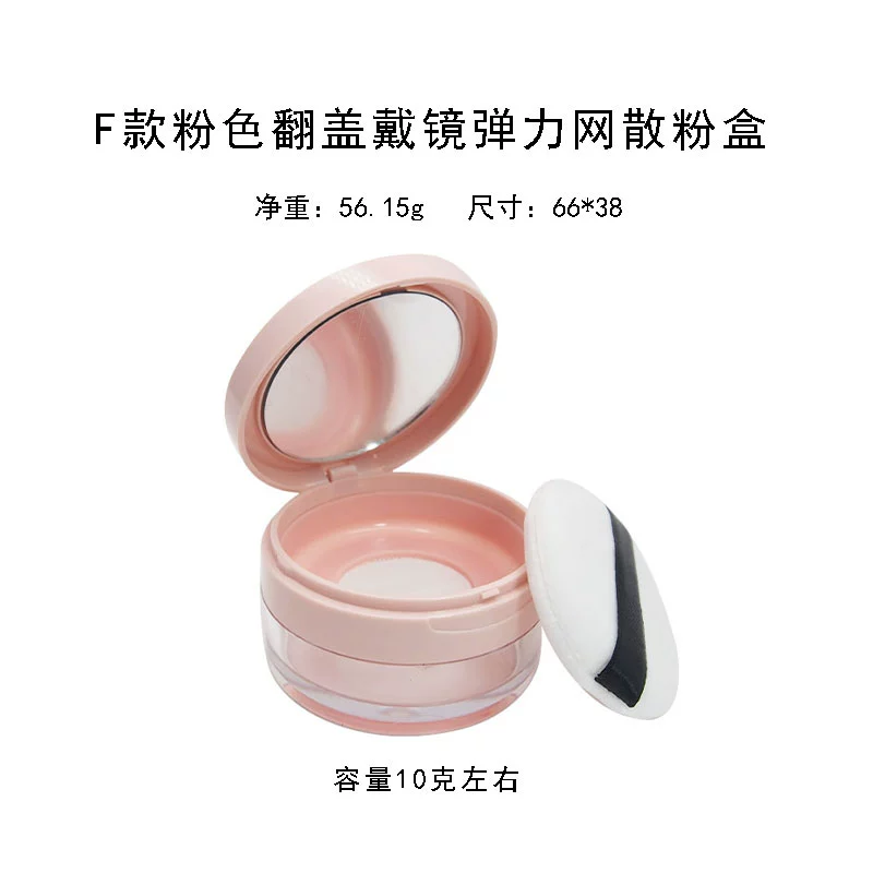 | nameOriginal | Empty loose powder box with puff mirror dry powder portable small setting powder storage box elastic mesh thin section |