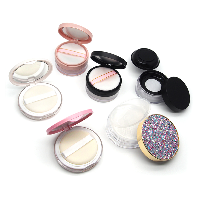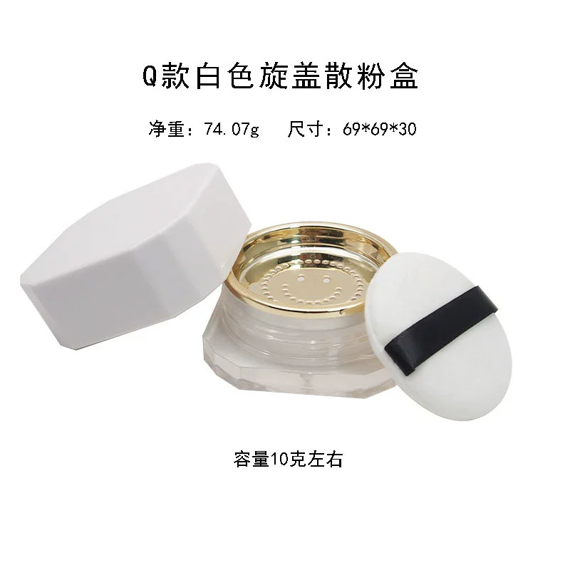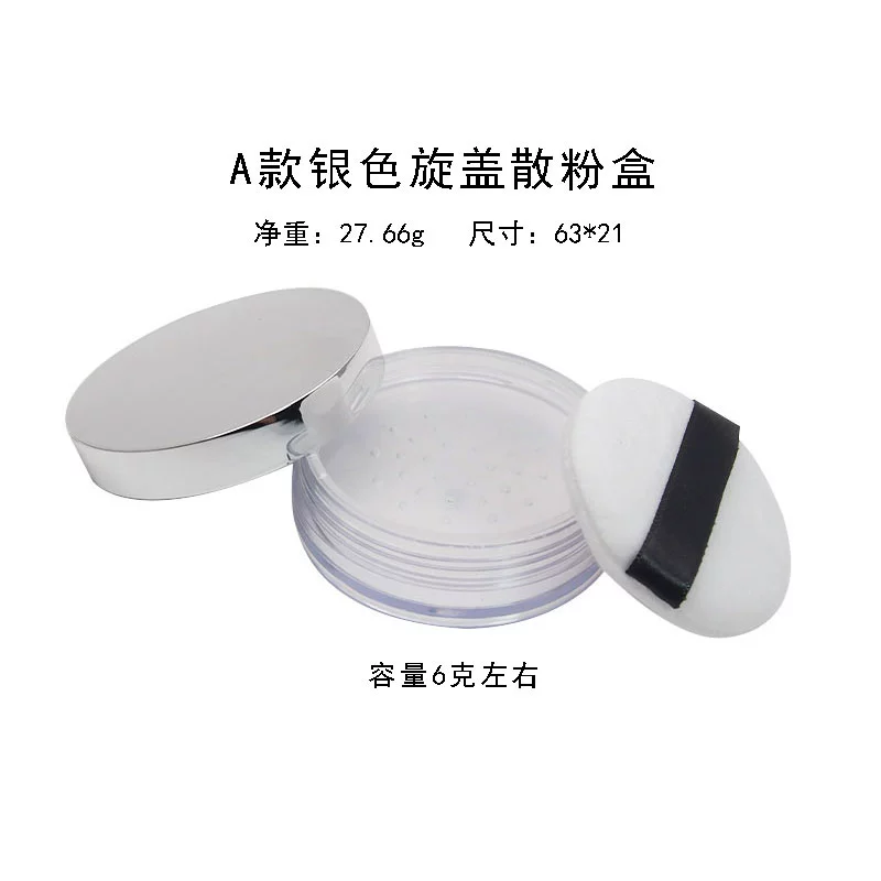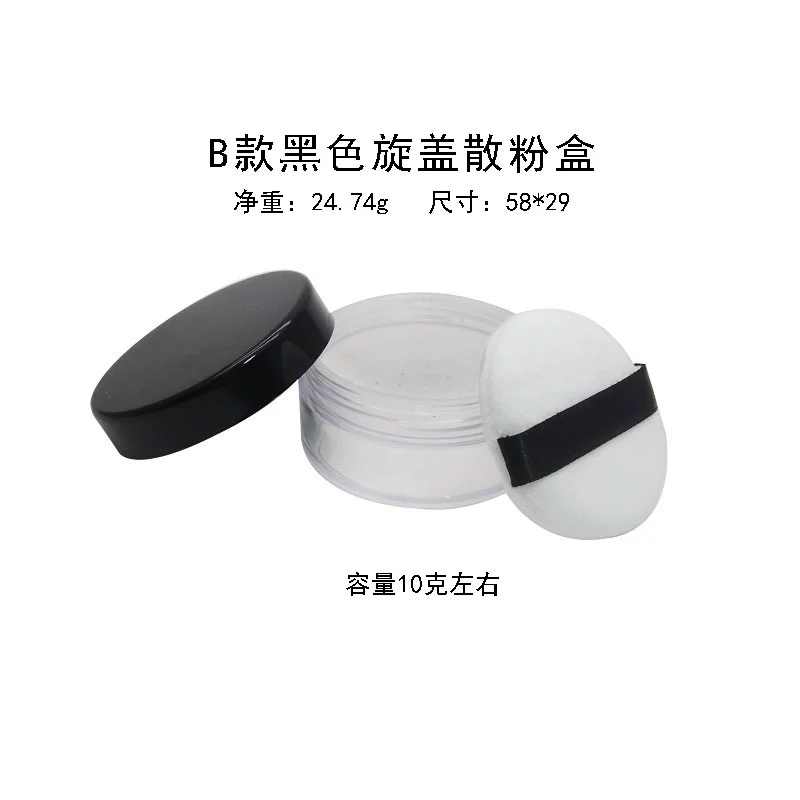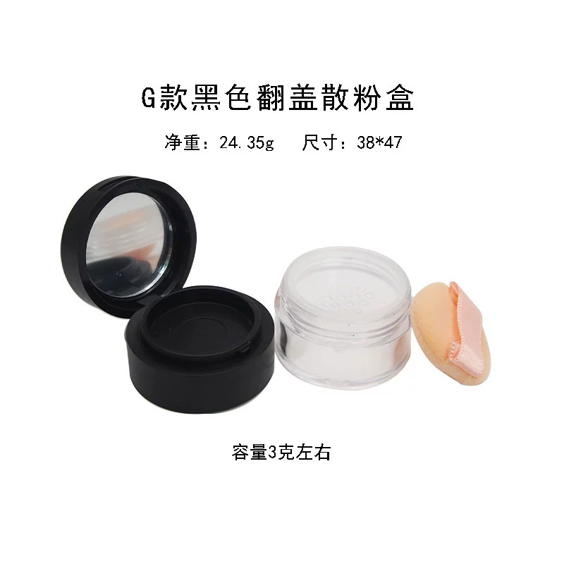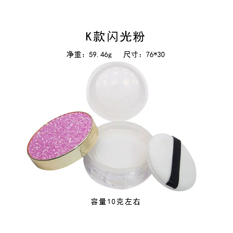| nameOriginal | Empty loose powder box with puff mirror dry powder portable small setting powder storage box elastic mesh thin section |