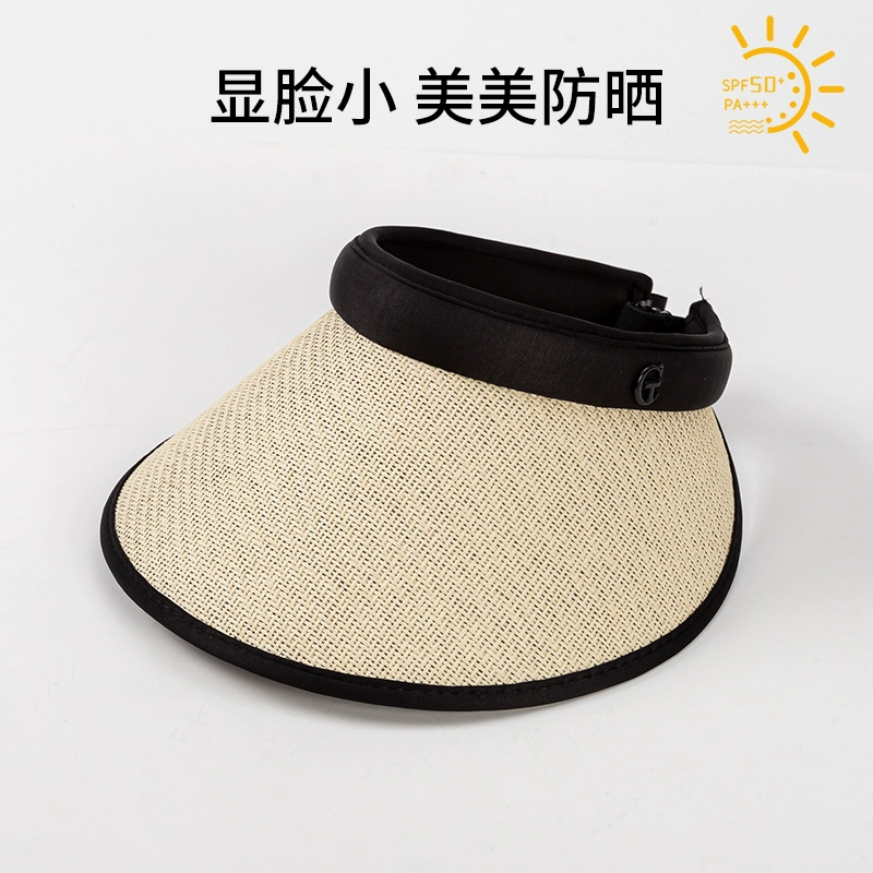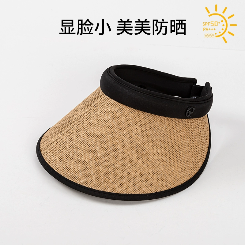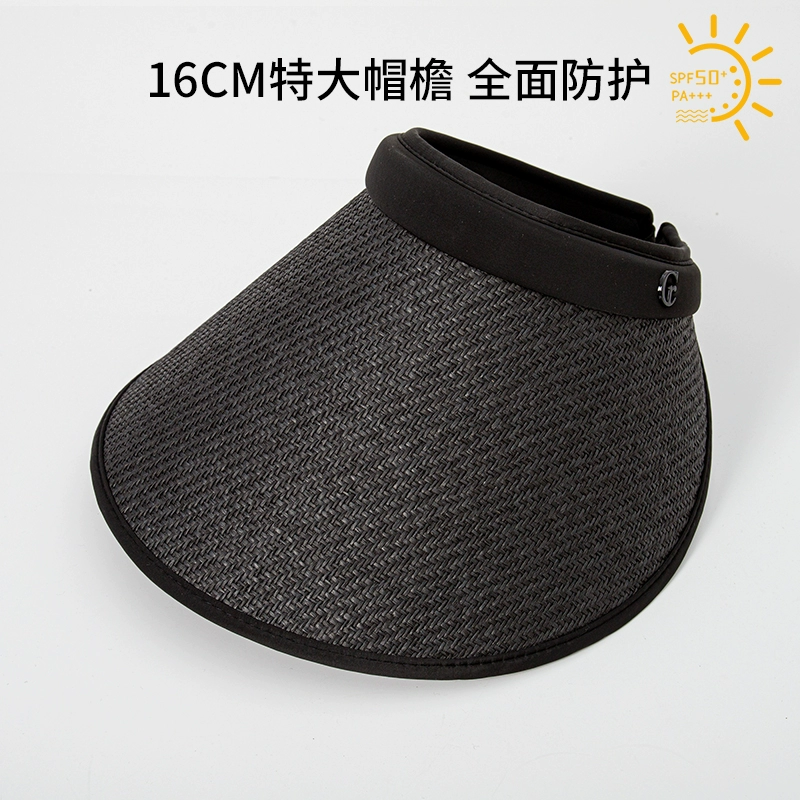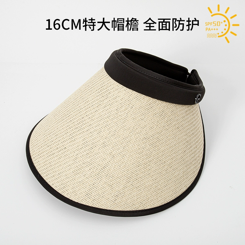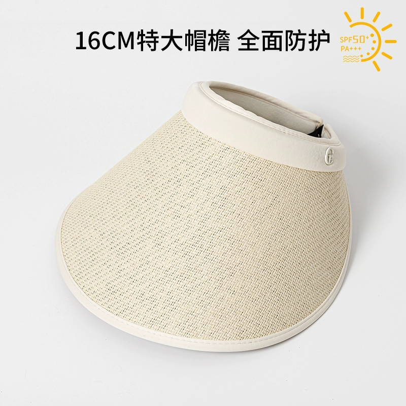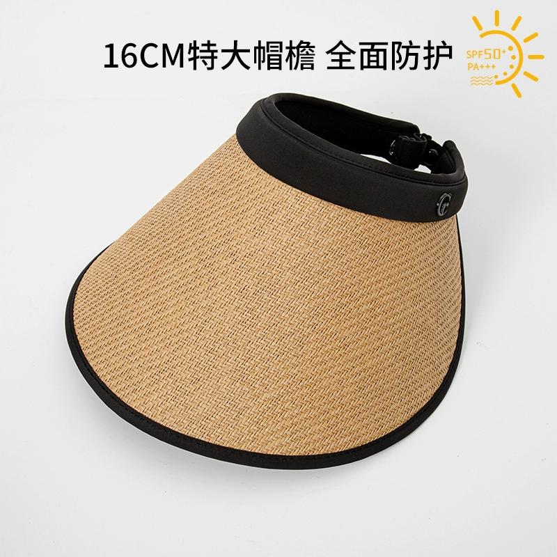 Empty-top sun hat for women, anti-UV, face-covering, cycling, summer, enlarged brim, oversized sunshade, straw hat, sun hat