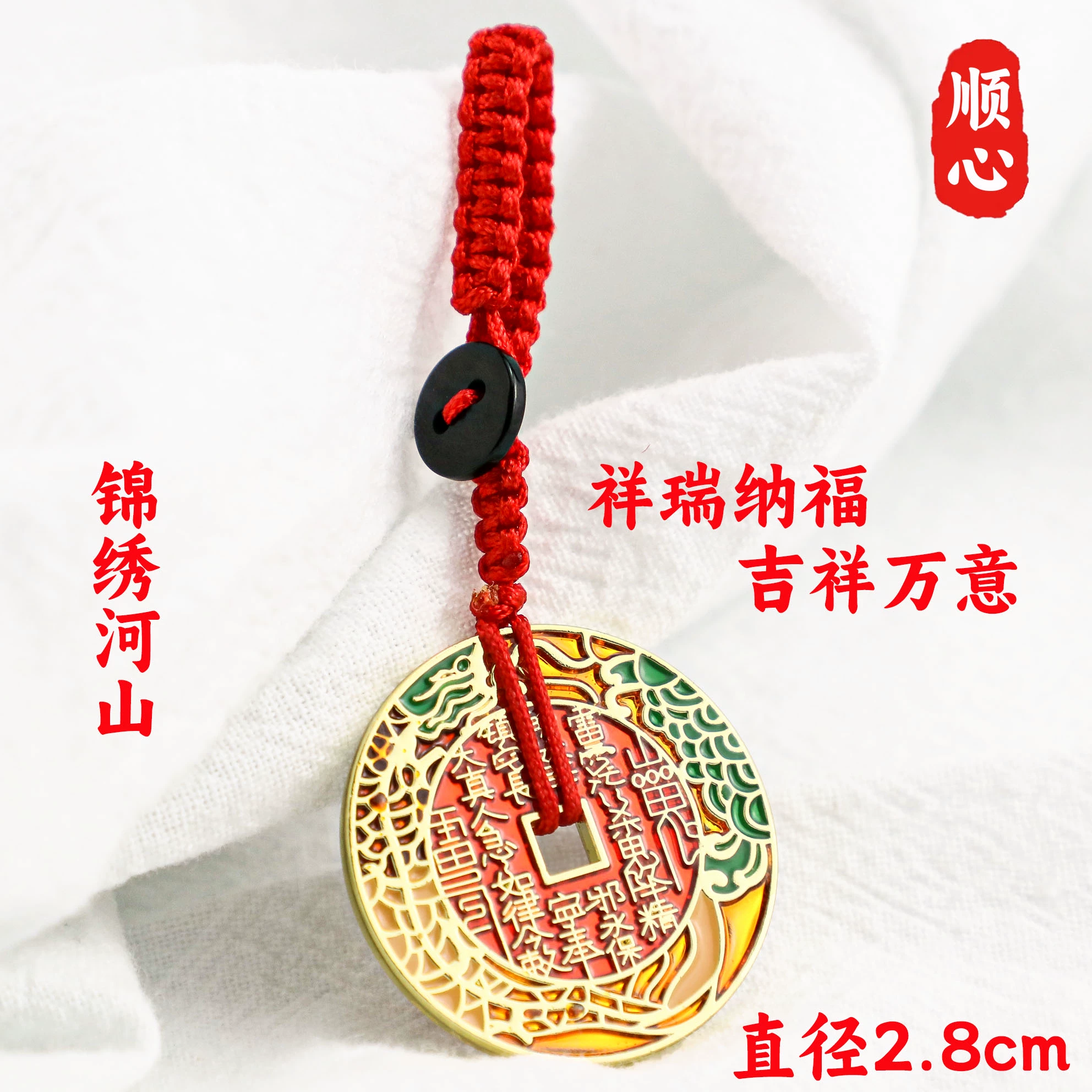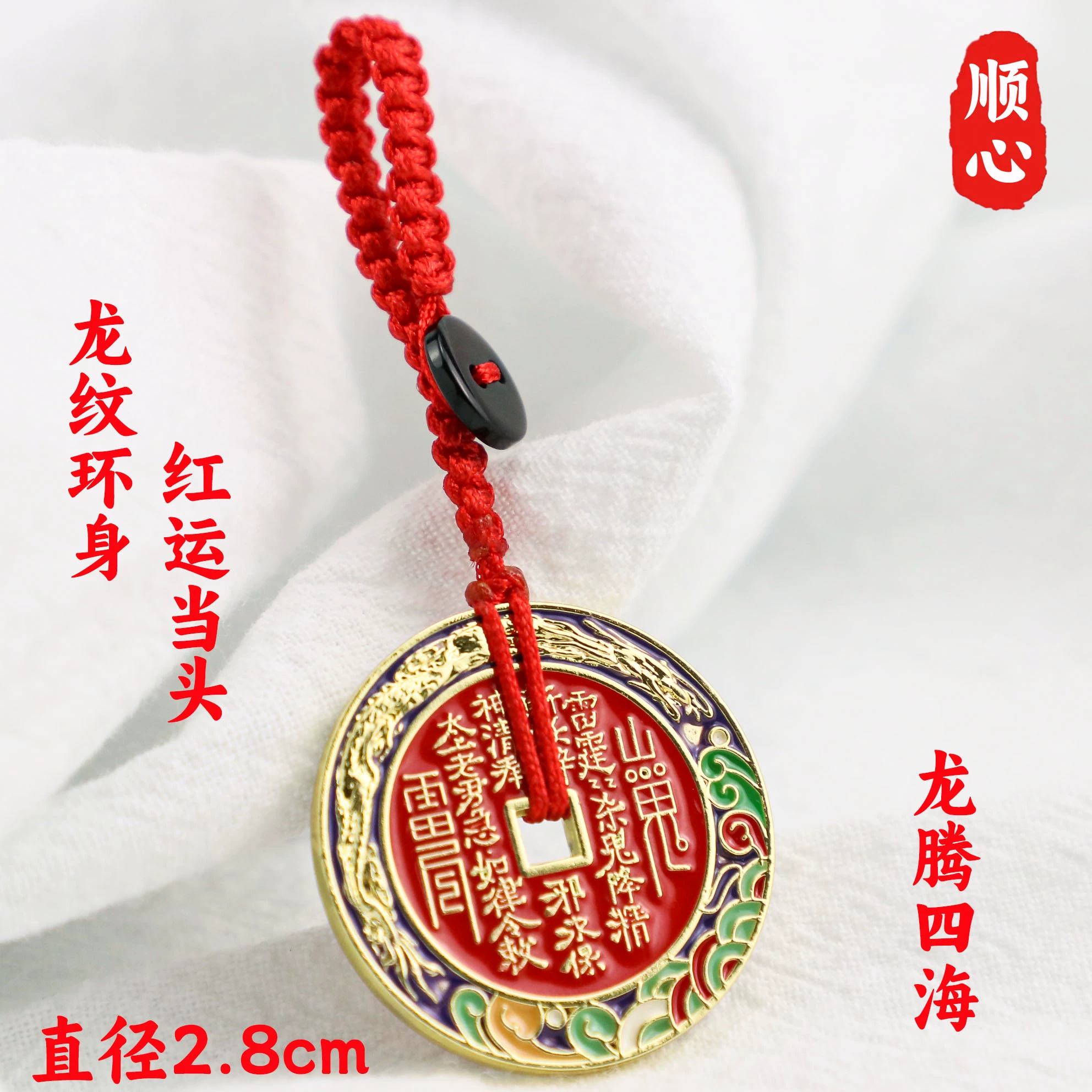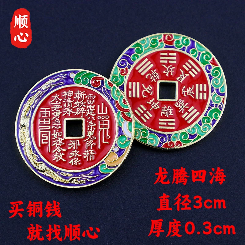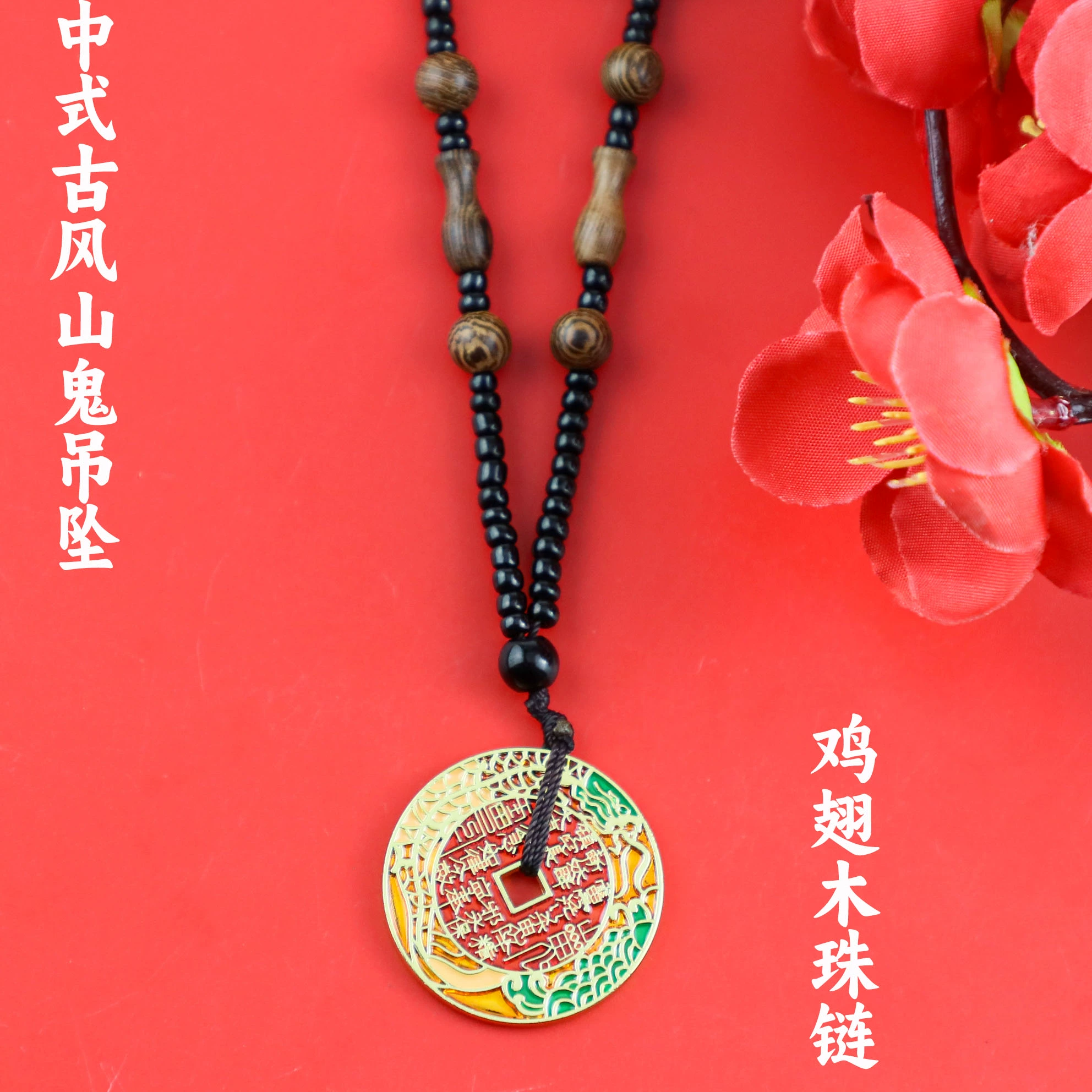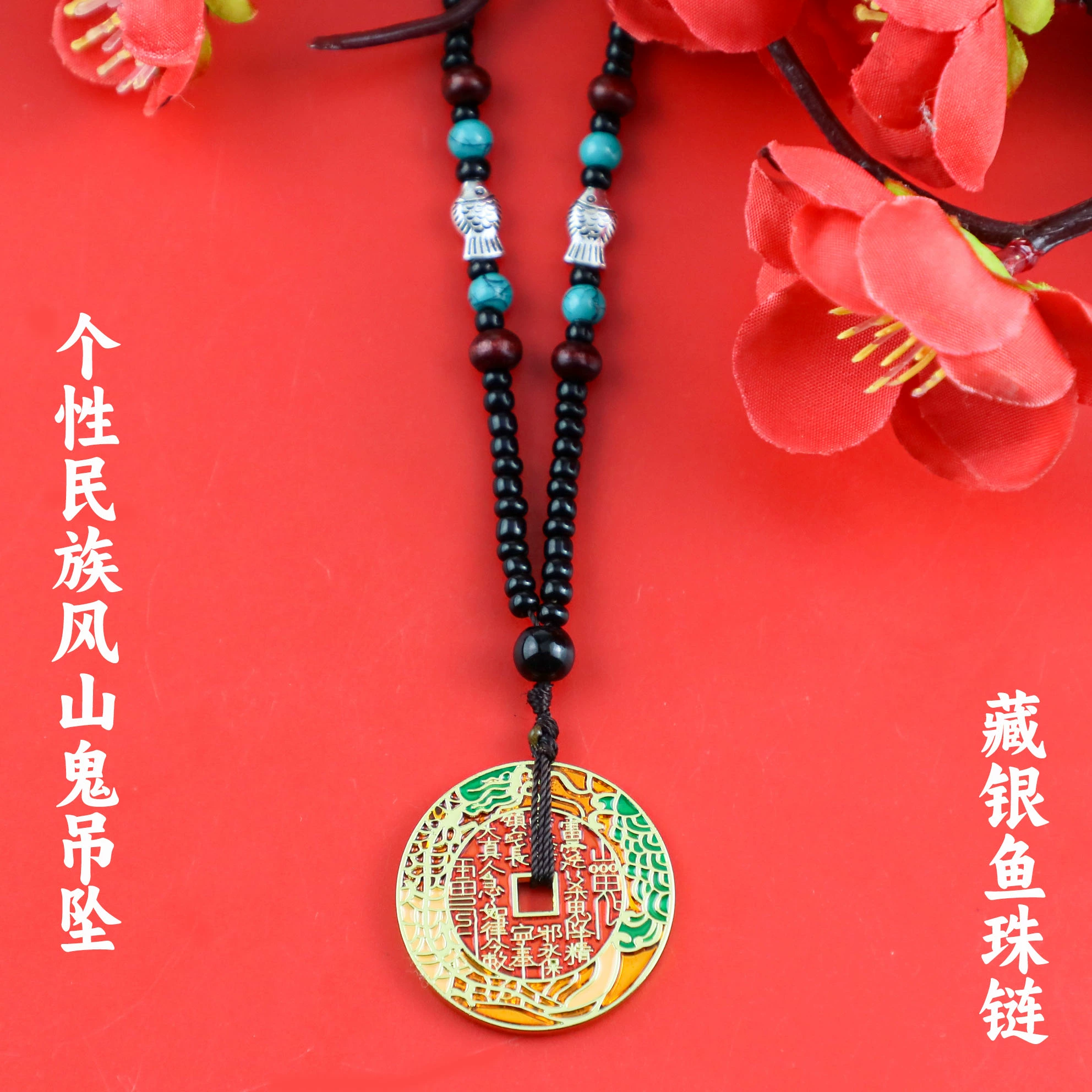 | nameOriginal | Enamel burnt blue gold-plated mountain ghost money necklace ancient sand gold dragon pattern pendant Chinese style antique coin gossip pendant |