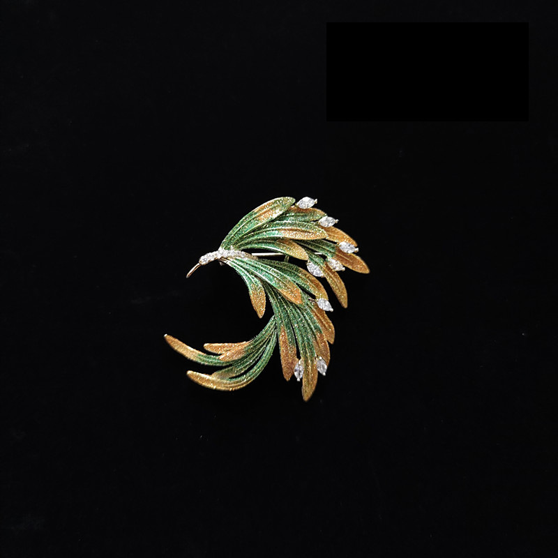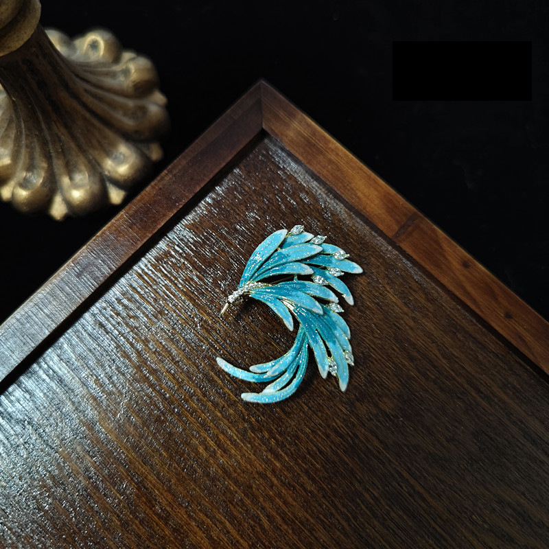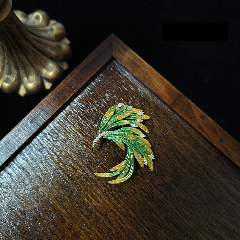 Enamel gradient micro diamond phoenix tail pin buckle Chinese style brooch retro elegant coat collar suit accessories men and women
